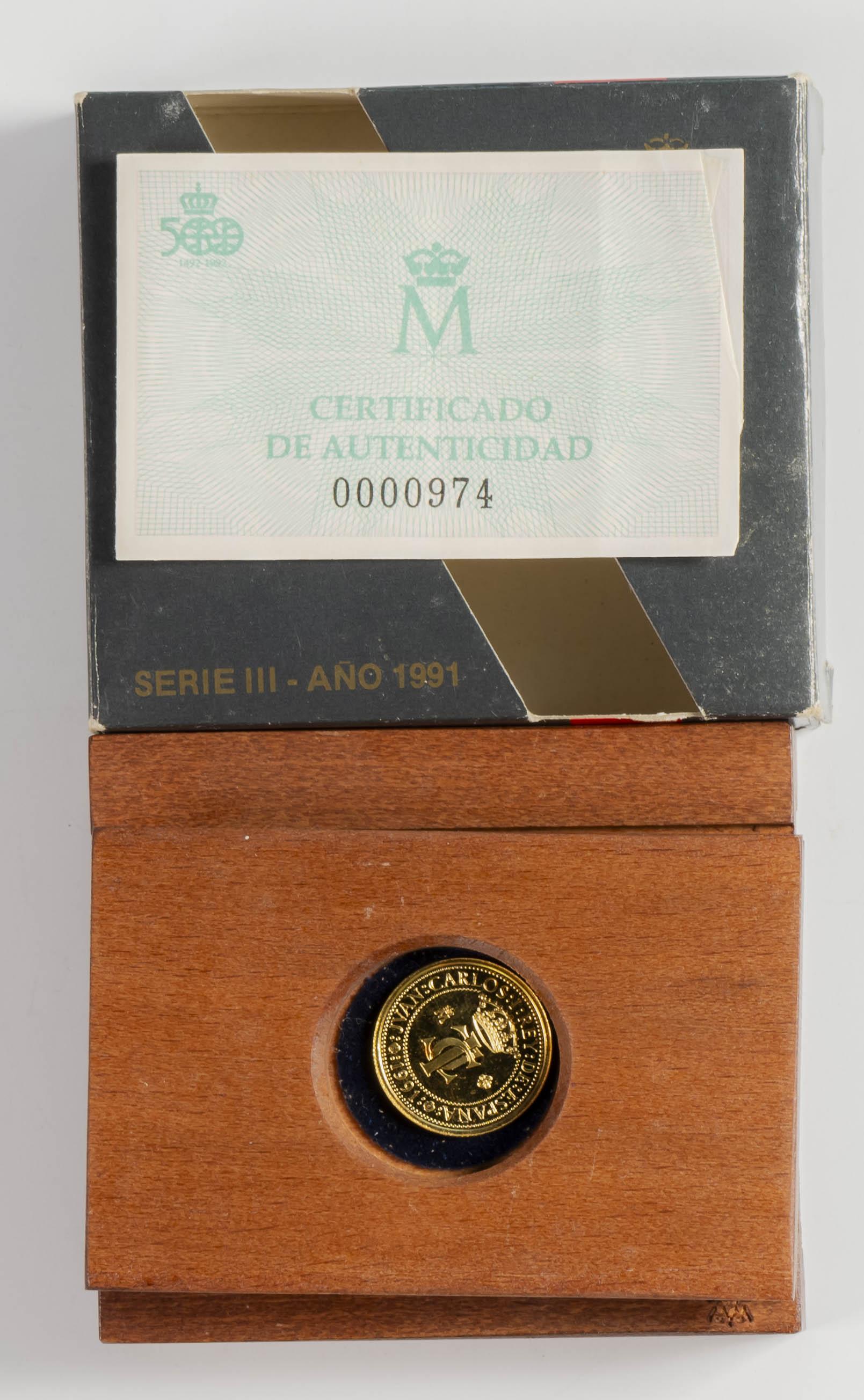 JUAN CARLOS I (1975-2014). 10,000 Pesetas. (Au. 3.37g/19mm). Fifth Centenary. Series III. 1991. FNMT. FDC. Presented in an official case (without capsule) and with a certificate of authenticity.