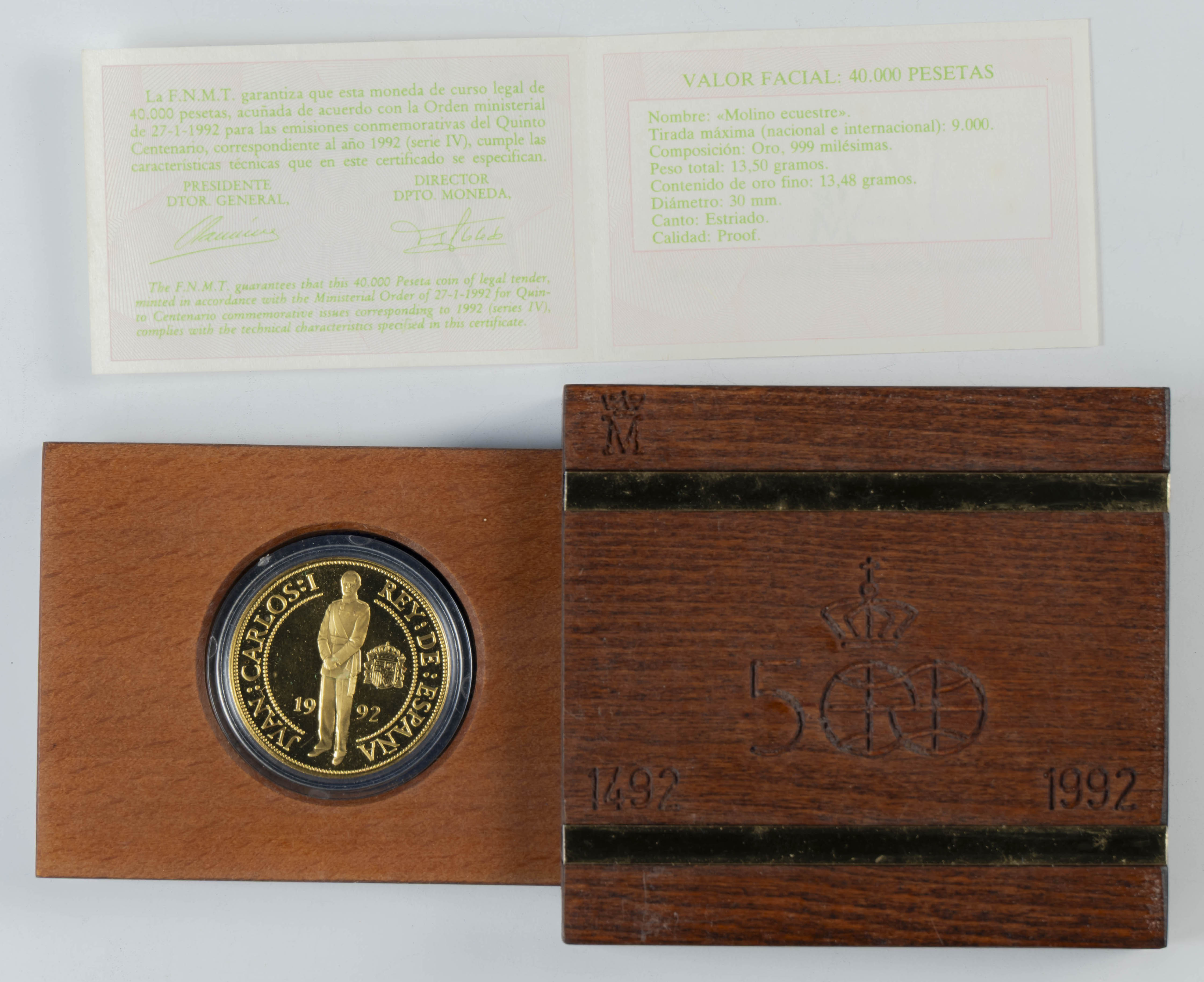 JUAN CARLOS I (1975-2014). 40,000 Pesetas. (Au. 13.50g/30mm). Fifth Centenary. Series IV. 1992. FNMT. PROOF. Presented in an official case and with a certificate of authenticity.