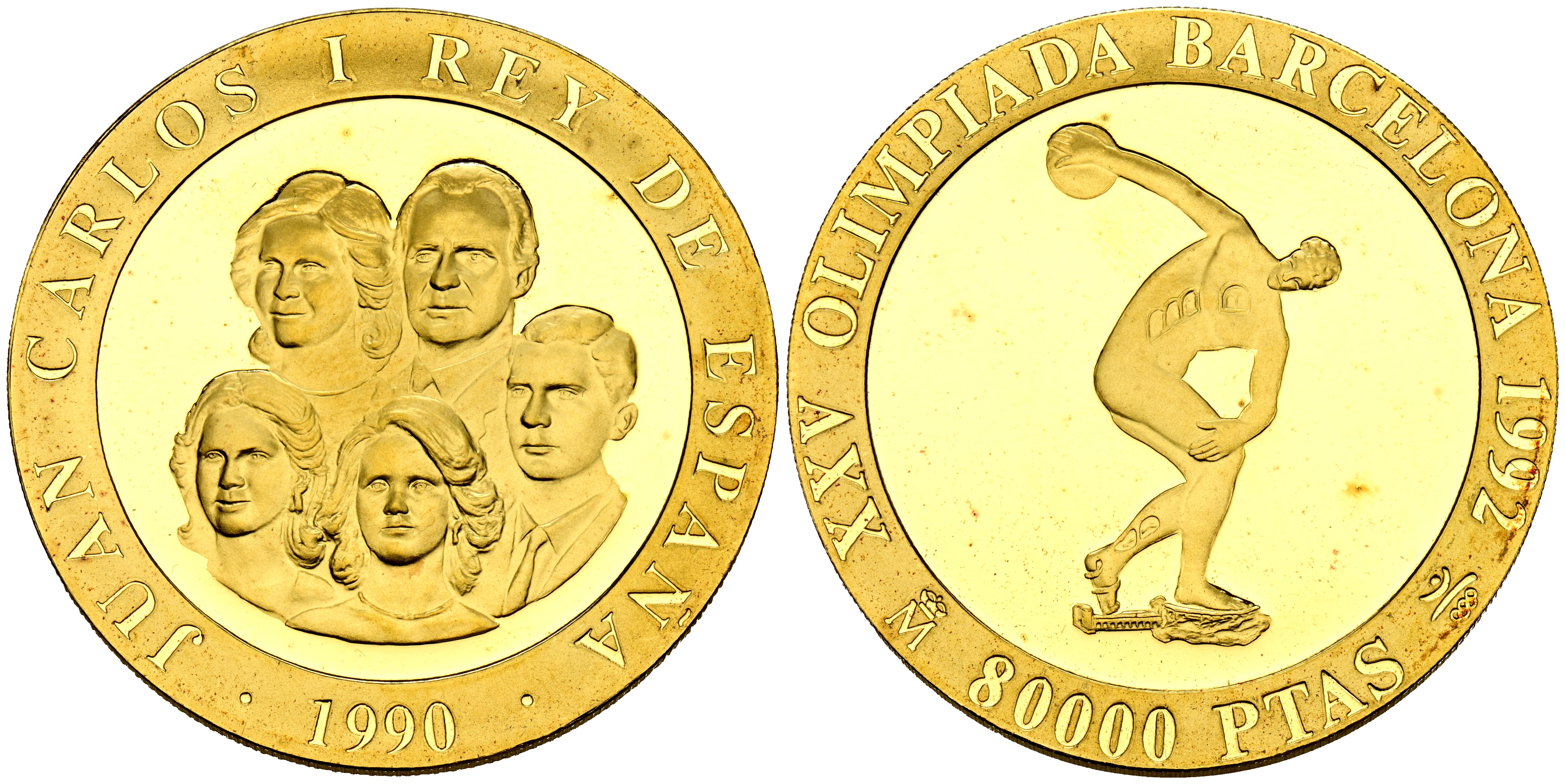 JUAN CARLOS I (1975-2014). 80,000 Pesetas. (Au. 27.00g/38mm). 1990. FNMT. Barcelona 1992 Olympic Games. Series II. PROOF. Includes original case (cardboard damaged).