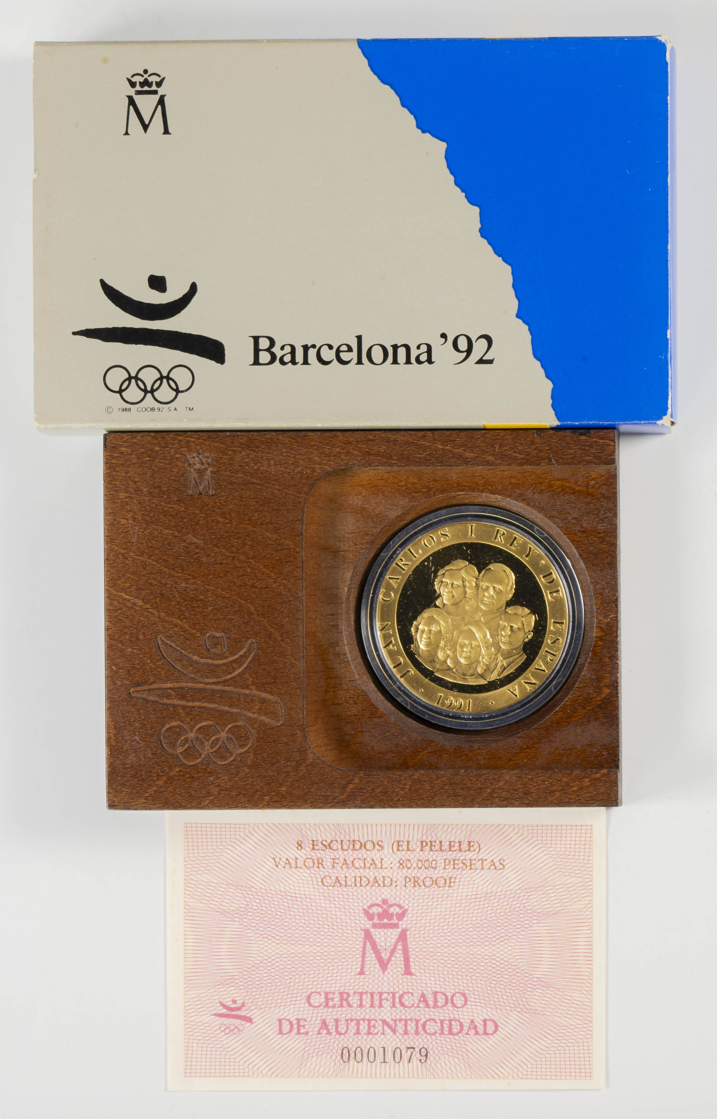 JUAN CARLOS I (1975-2014). 80,000 Pesetas. (Au. 27.00g/38mm). 1991. FNMT. Barcelona 1992 Olympic Games. Series III. PROOF. Includes original case and certificate of authenticity. Mintage of 7,000.