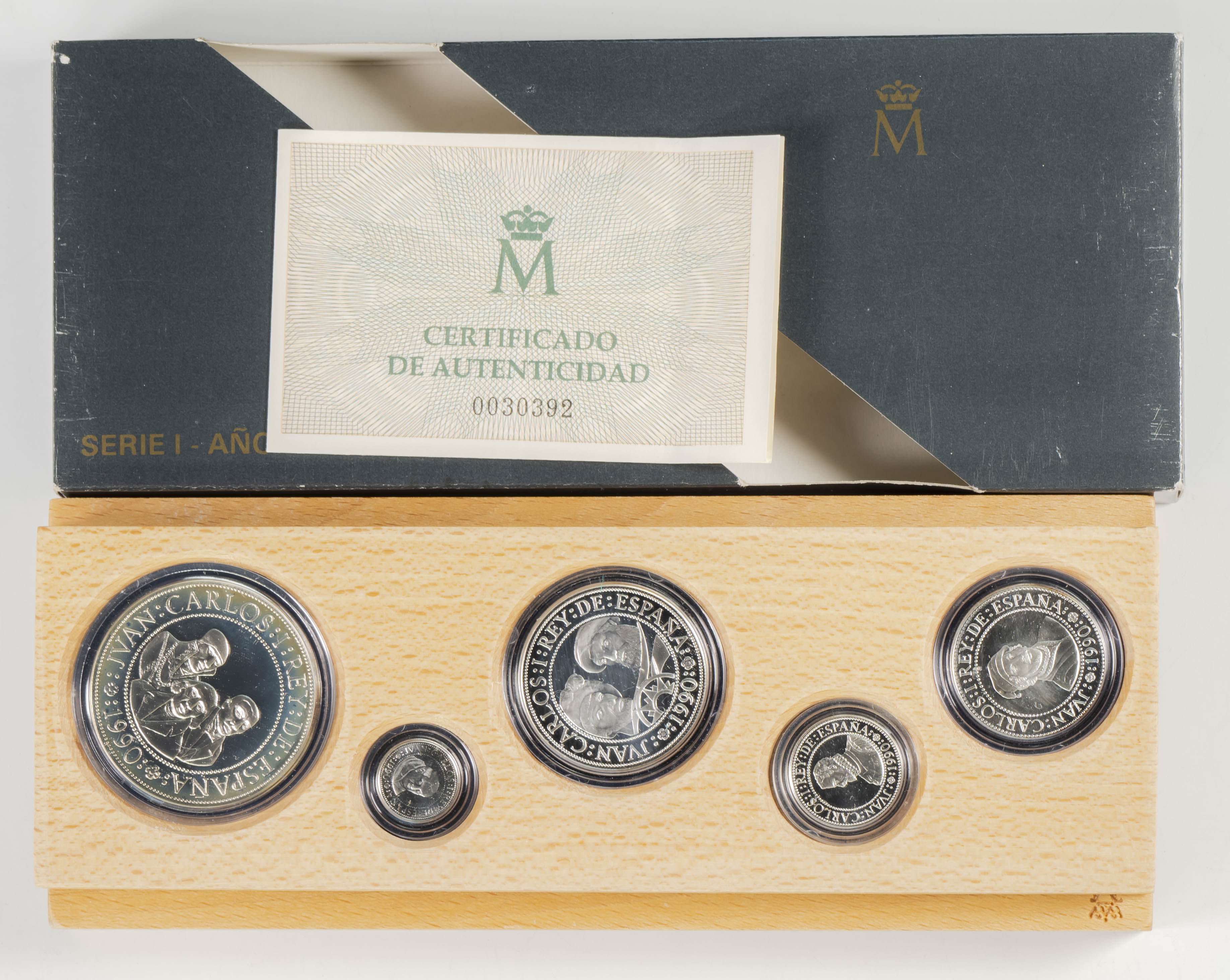 JUAN CARLOS I (1975-2014). Complete set of 5 silver coins with denominations ranging from 100 to 2000 pesetas. Fifth Centenary. 1990. Series II. FNMT. FDC Glossy. Includes original case and certificate of authenticity.
