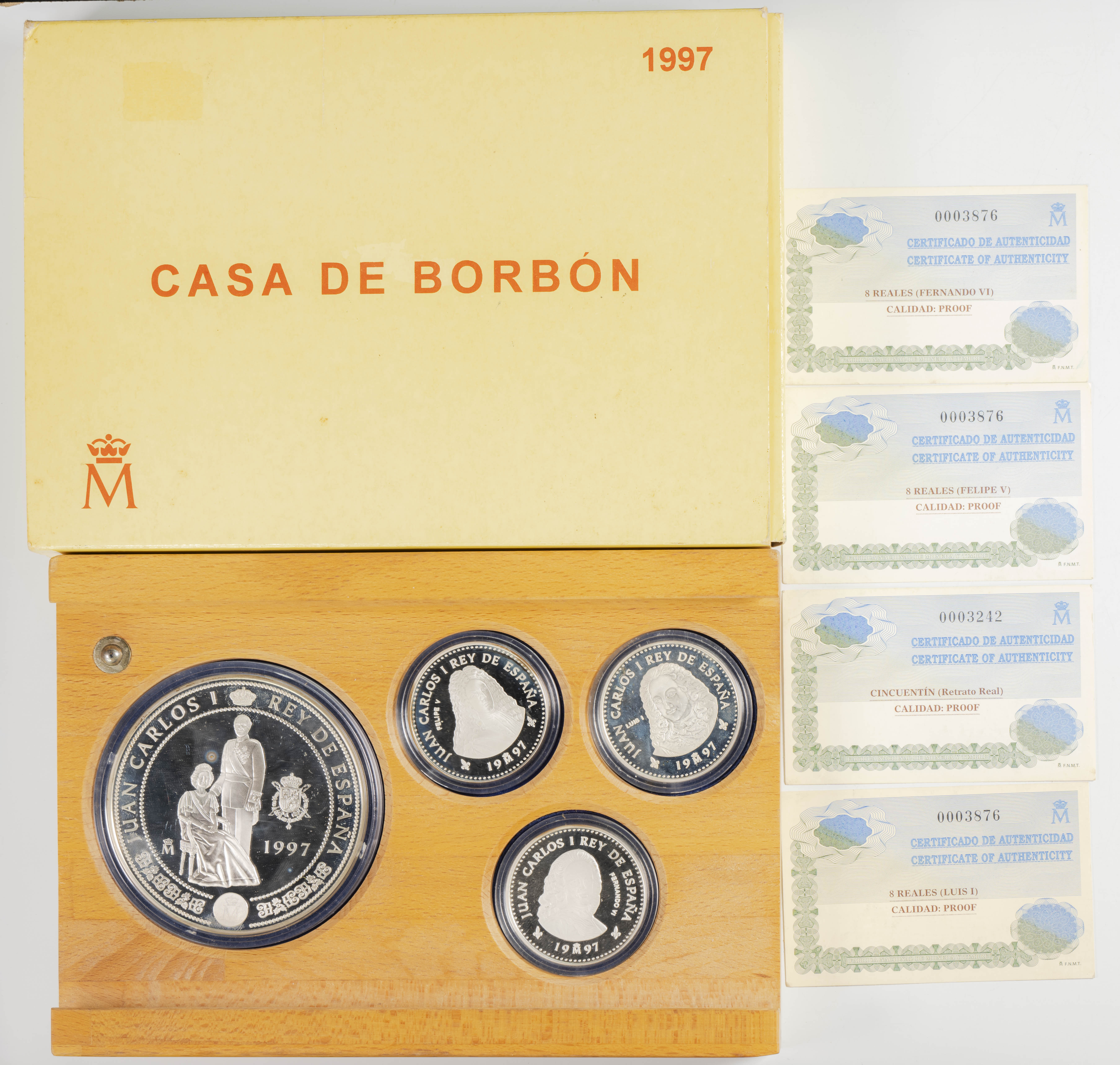 Juan Carlos I (1975-2014). House of Bourbon. Silver Series. 4 coins with denominations of 10,000 (1) and 2,000 pesetas (3). 1997. FNMT. PROOF. Includes original case and certificates of authenticity.