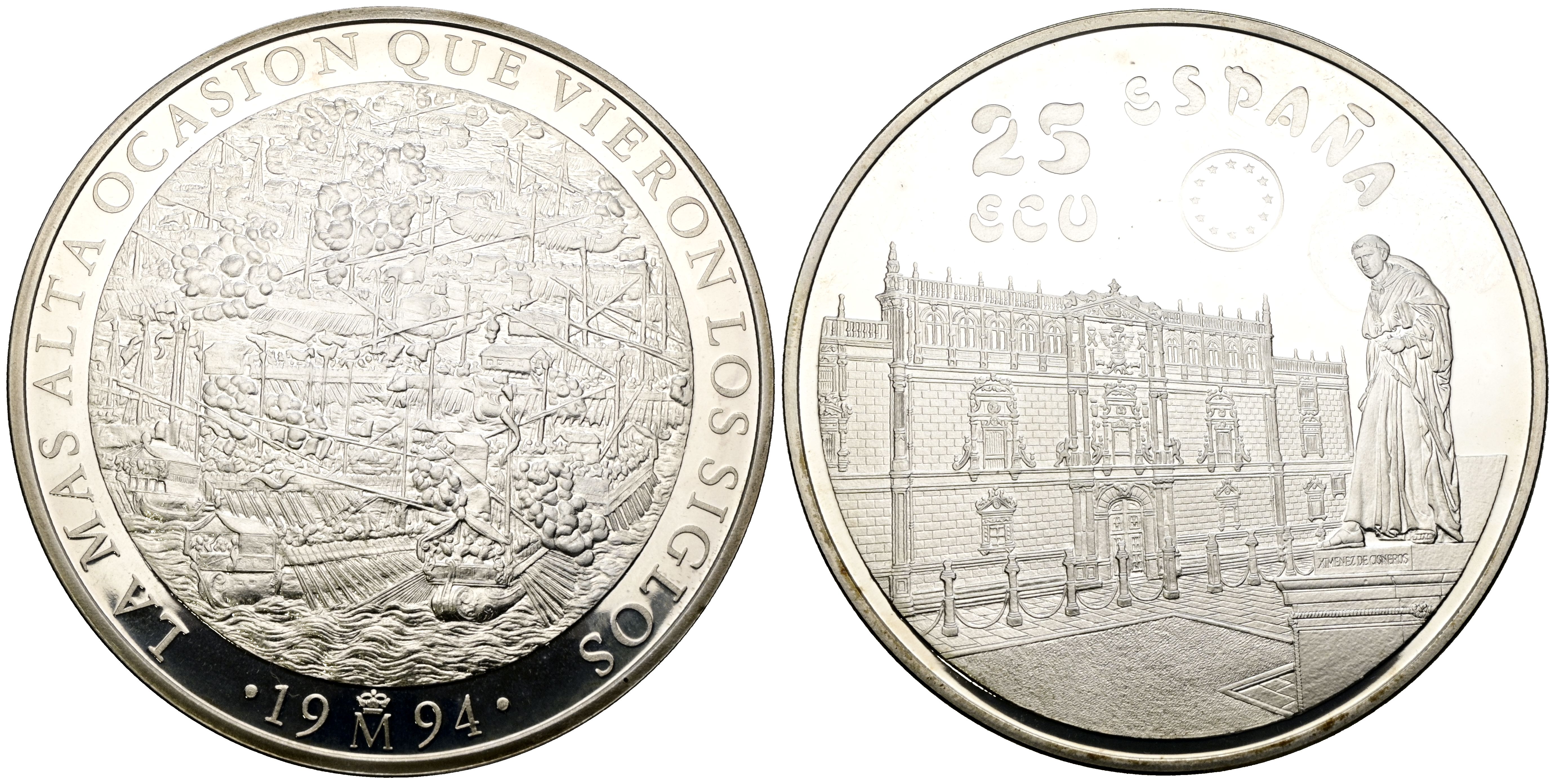 JUAN CARLOS I (1975-2014). 25 Ecu. (Ar. 168.75g/73mm). 1994. FNMT. University of Alcalá de Henares. Includes capsule.