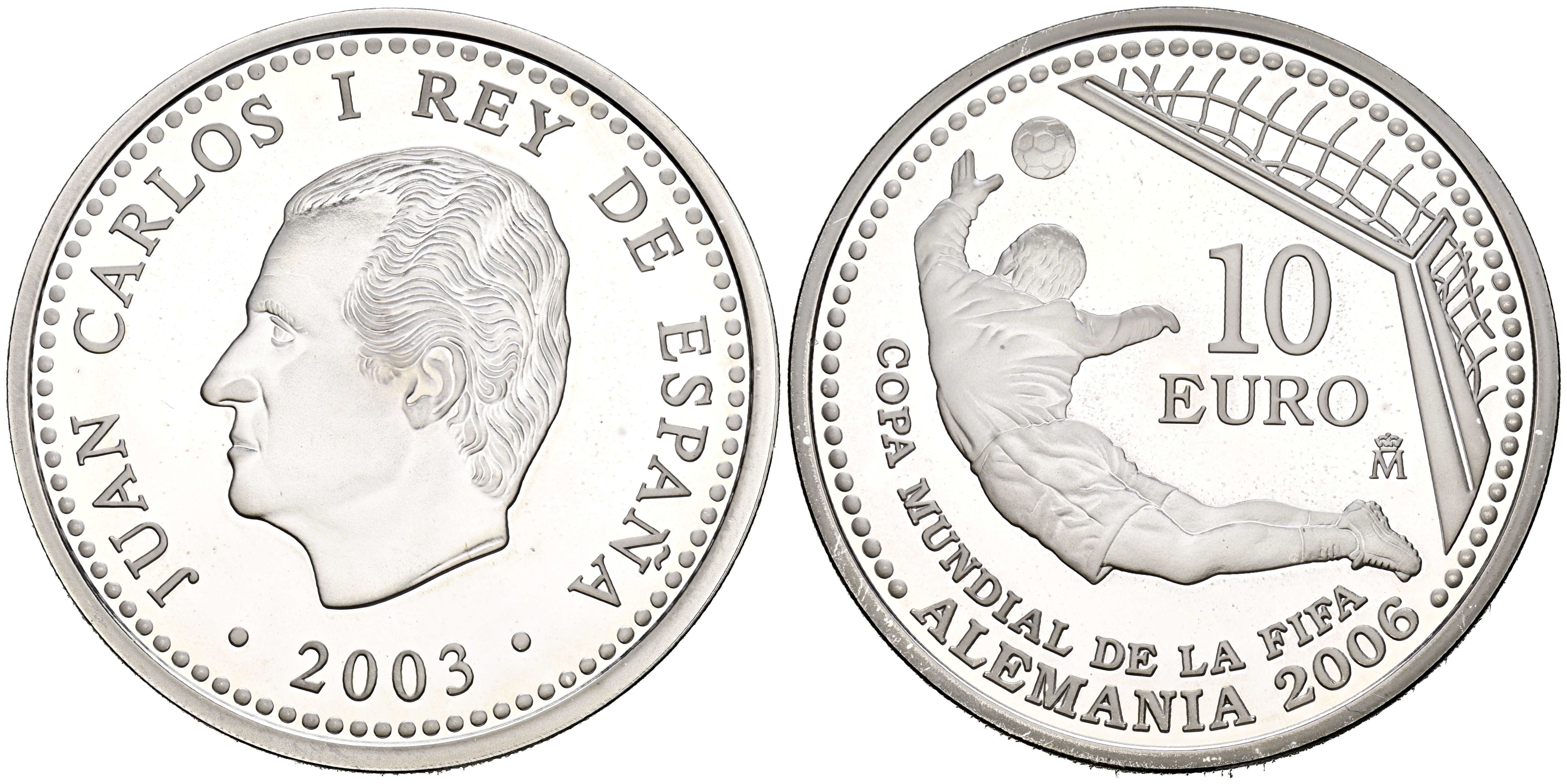 JUAN CARLOS I (1975-2014). 10 Euros. (Ar. 27.02g/40mm). 2003. 2006 World Cup, Germany. (Km#1076). PROOF.