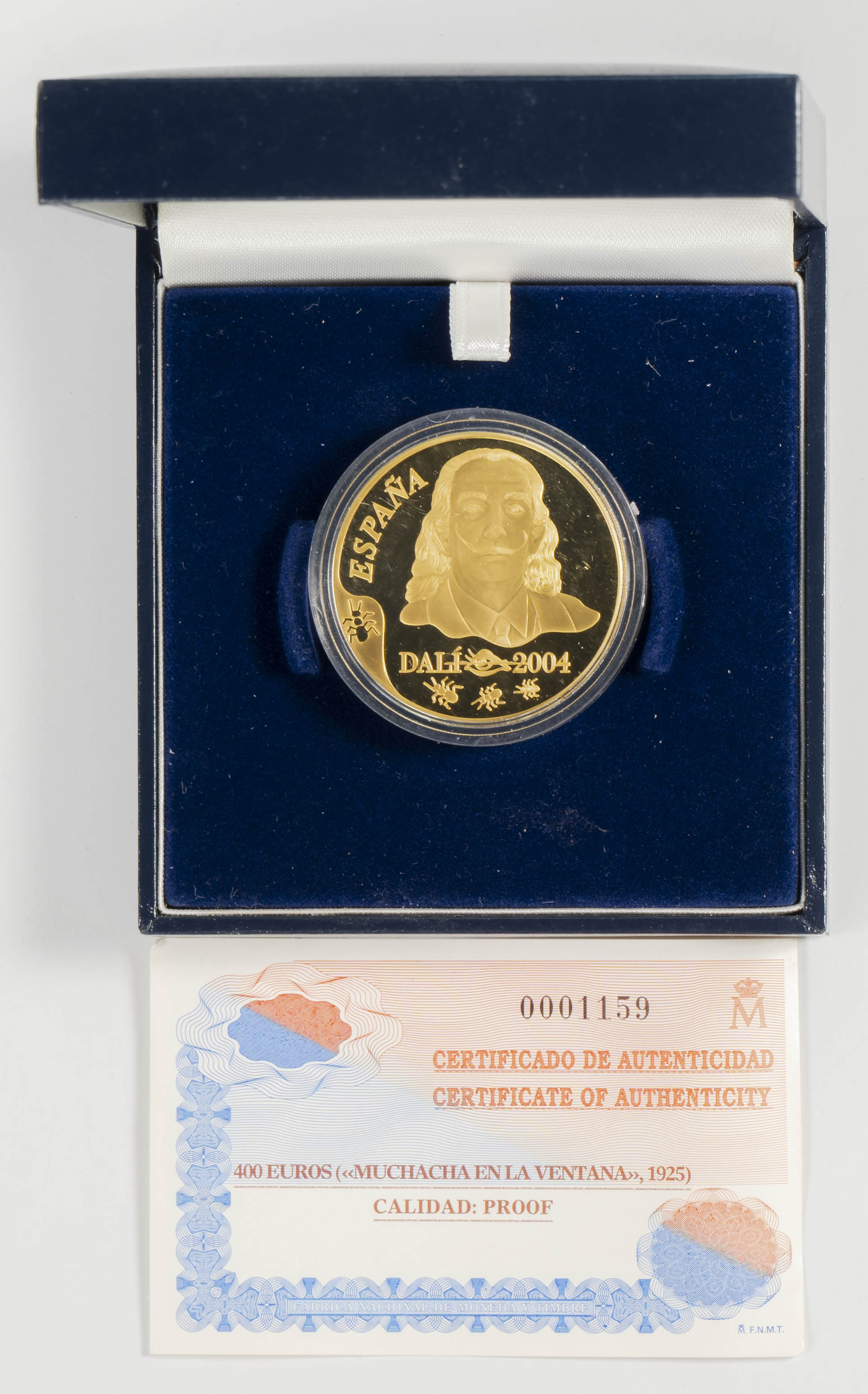 JUAN CARLOS I (1975-2014). 400 Euros. (Au. 27.00g/38mm). 2004. FNMT. Salvador Dalí. Girl at the Window. PROOF. Edition of 5,000. Includes original box (without original cardboard) and certificate of authenticity.