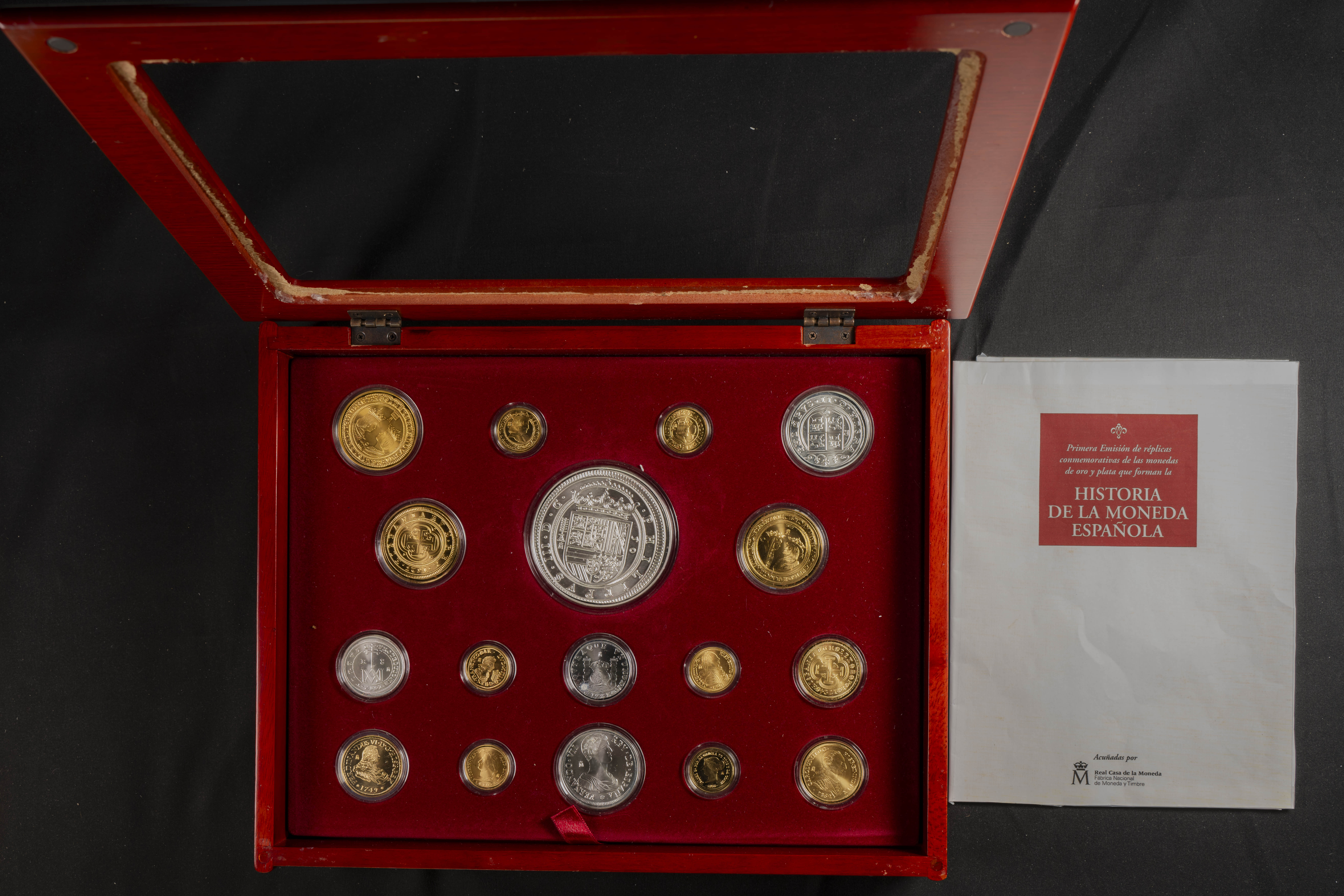 JUAN CARLOS I (1975-2014). History of Spanish Coinage. FNMT. Madrid. Issue of replicas of 17 iconic Spanish numismatic coins in silver and gold-plated silver. PROOF. Includes original case (without methacrylate) and certificate of authenticity.