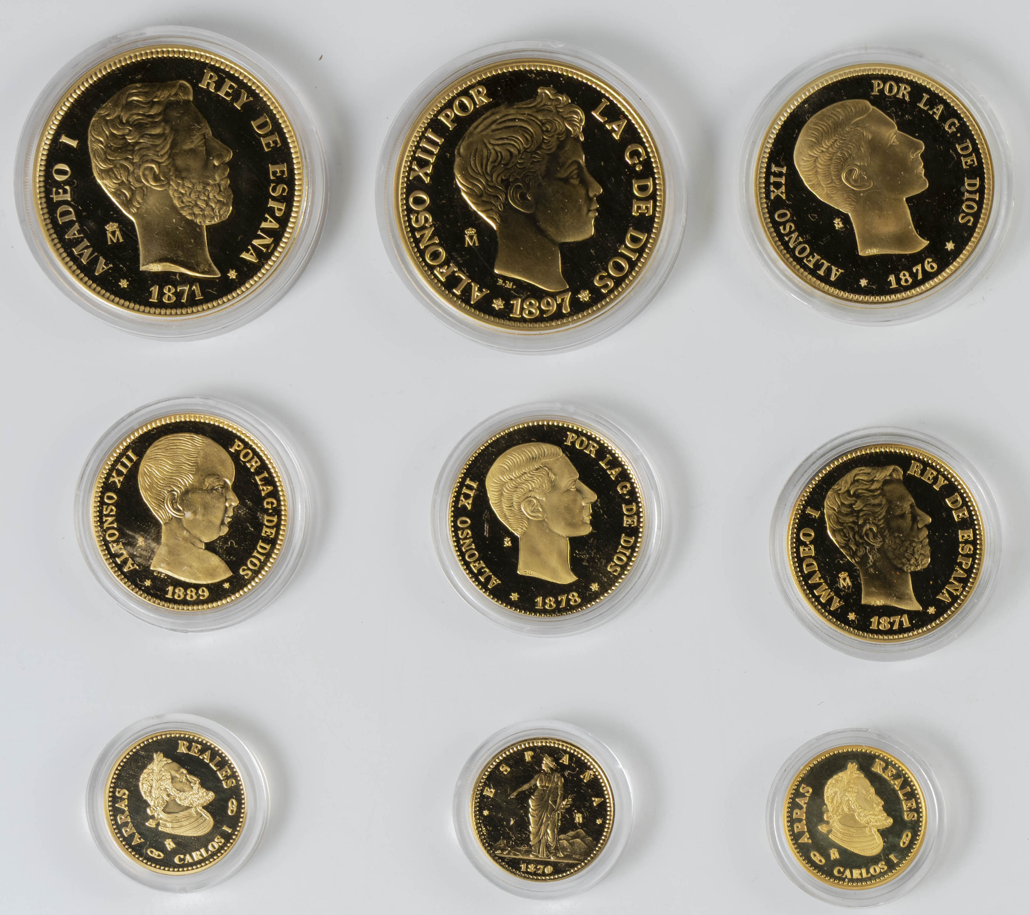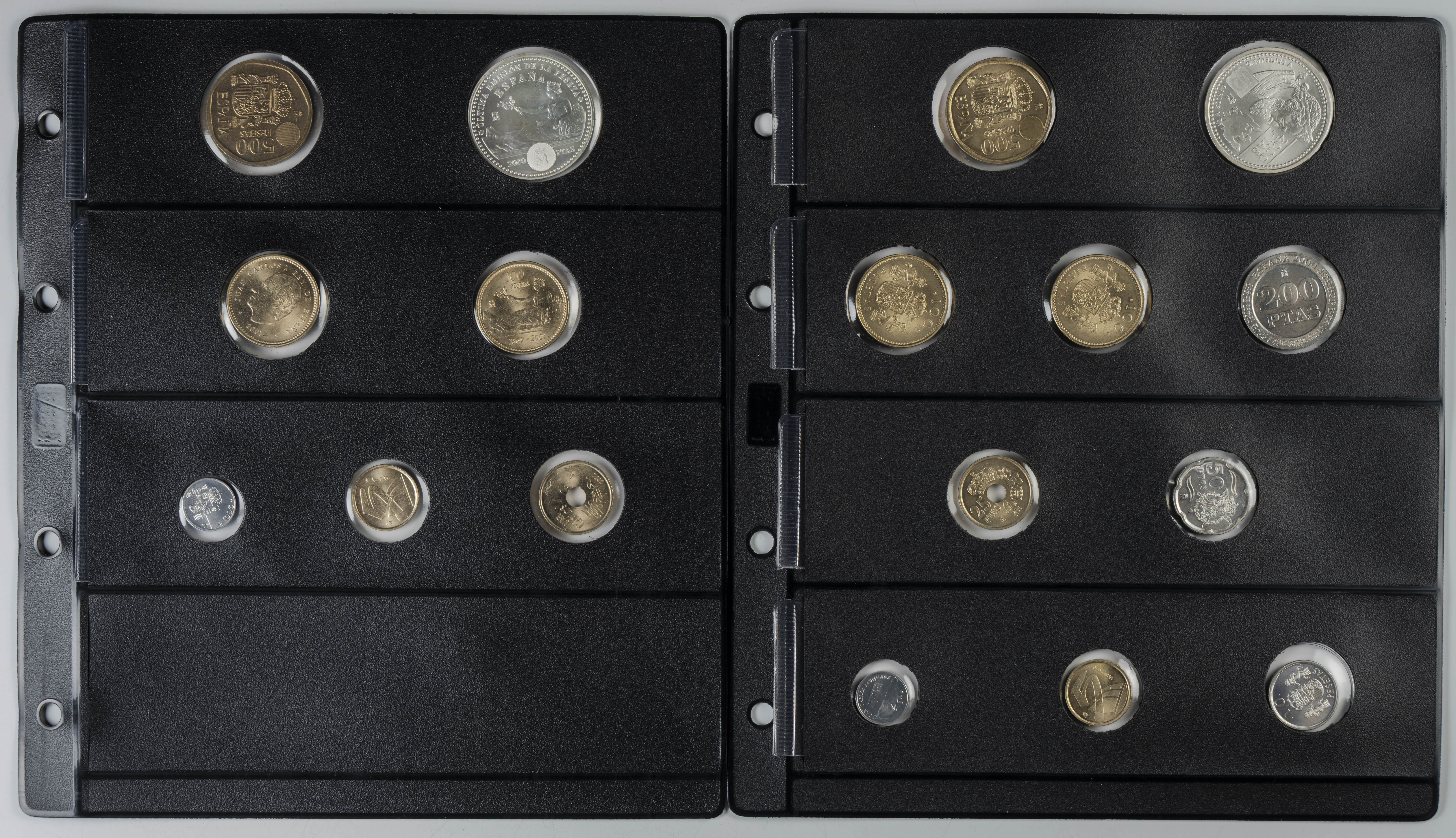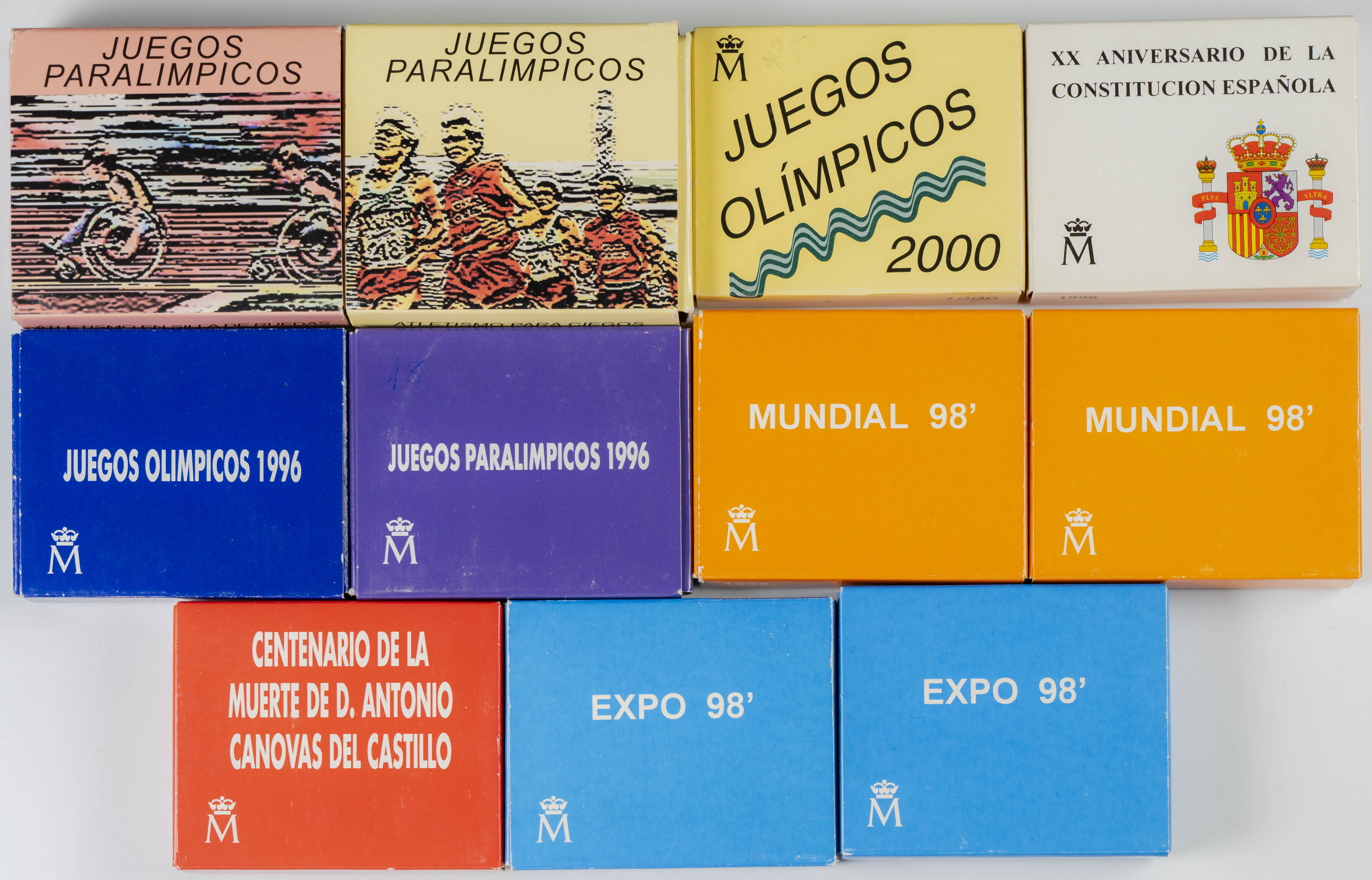 Magnificent collection consisting of dozens of coins, both legal tender and commemorative. Highlights include the complete silver History of the Peseta collection (24 coins with capsules but no case), as well as 22 2000-peseta, 12-euro, and 20-euro coins with different themes. The collection is rounded off with 11 commemorative cases, also in silver, for 1000 pesetas and two albums containing complete sets of Juan Carlos I coins, including several more 2000-peseta coins. Various states of conservation. PLEASE EXAMINE.