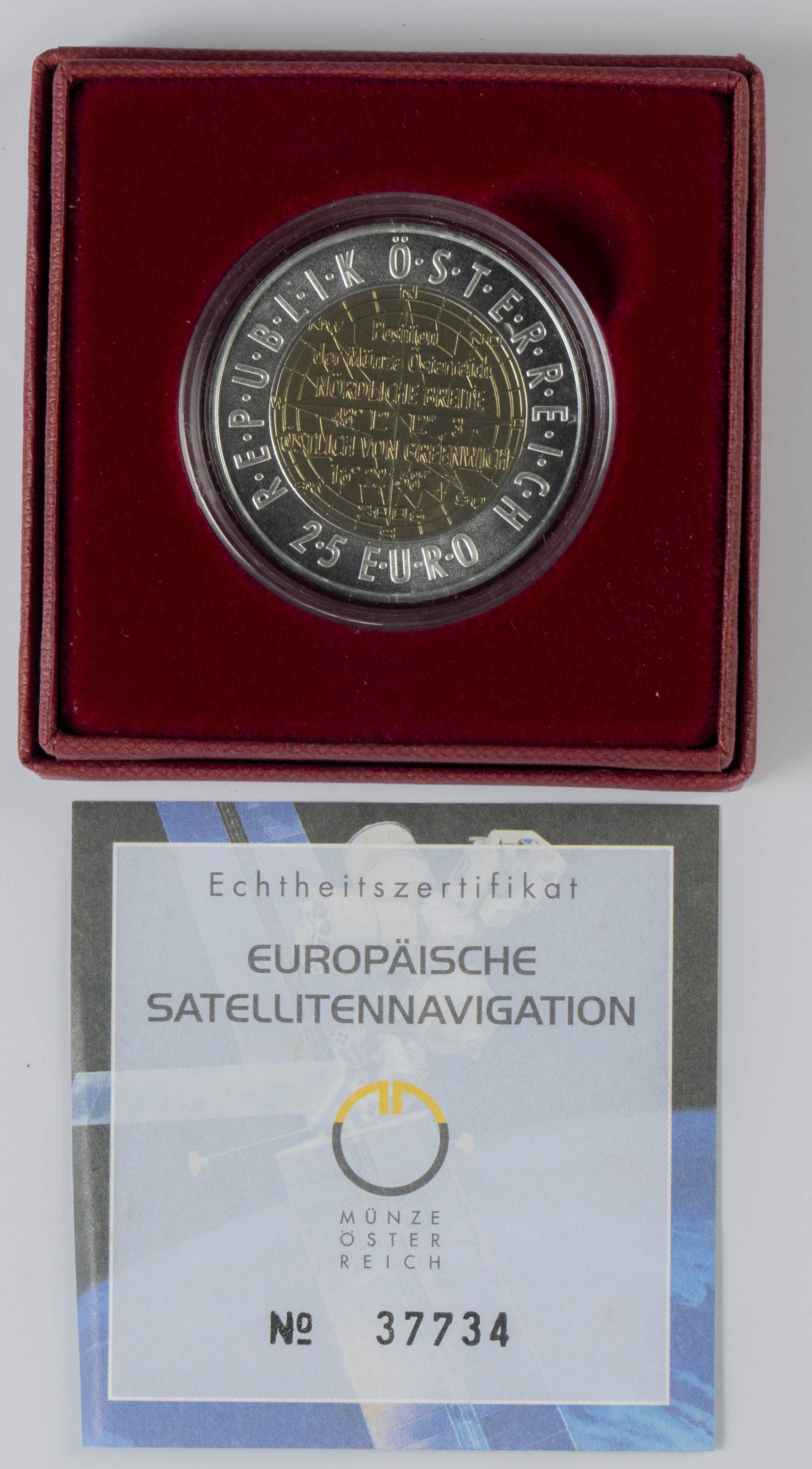 AUSTRIA. 25 Euros. (Niobium-Ar. 16.88/34mm). 2006. European navigation satellite. (Km# 3135). Unused. Includes case and certificate of authenticity.