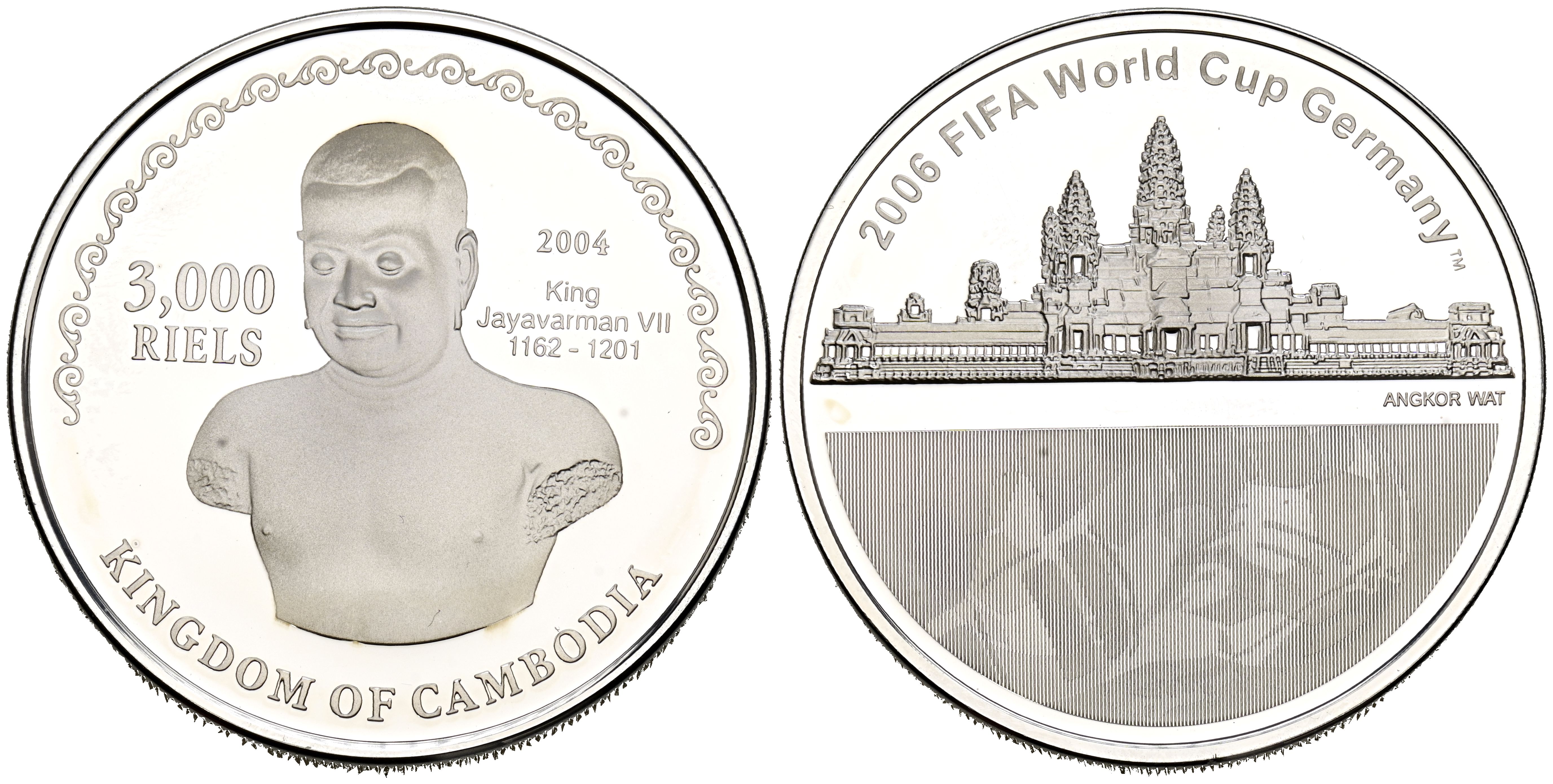 English CAMBODIA. 3000 Riels. (Ar. 31.25g/39mm). 2004. 2006 World Cup, Germany. (Km#139). PROOF.