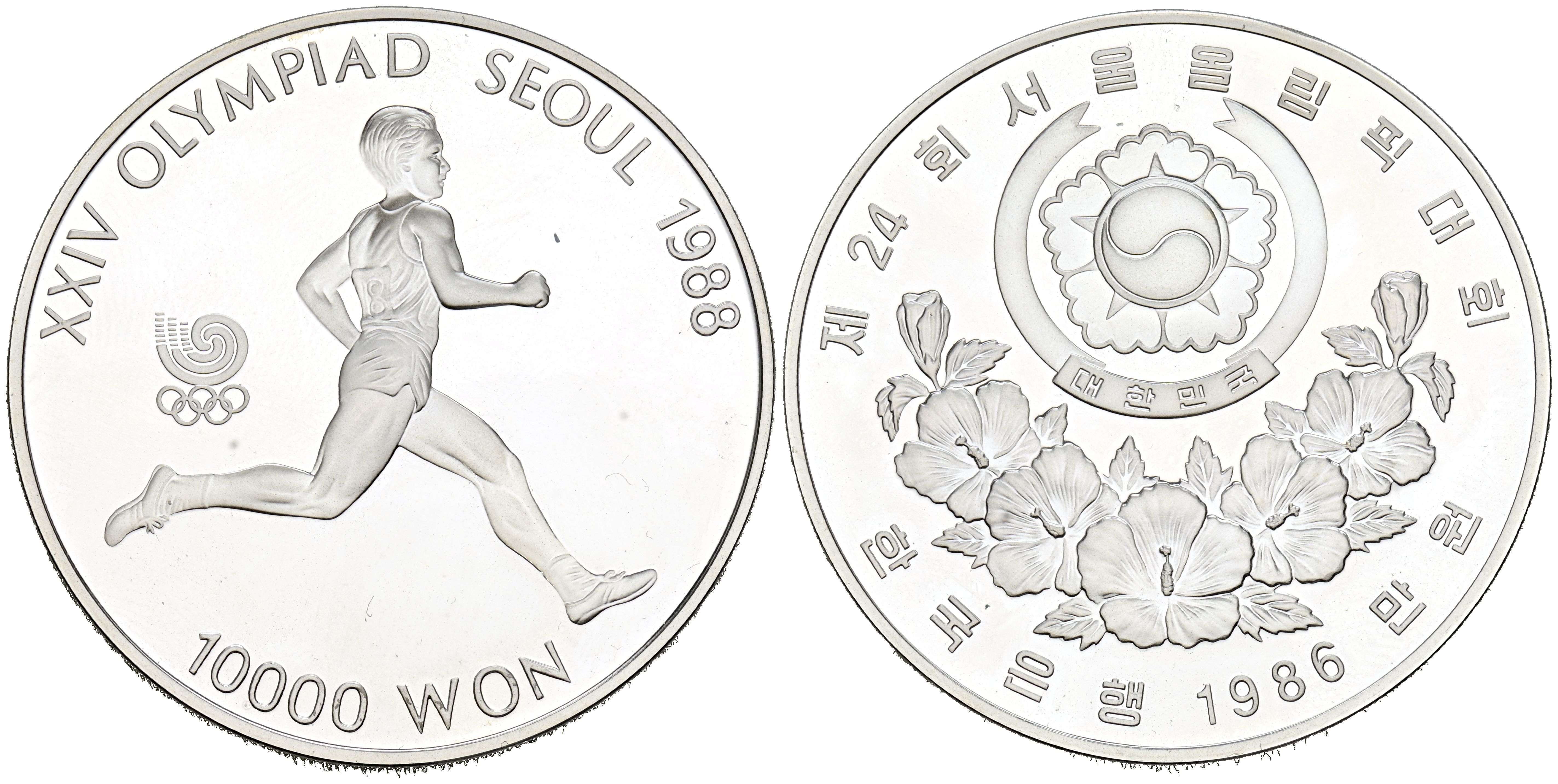 English SOUTH KOREA. 10,000 Won. (Ar. 33.63g/40mm). 1986. Seoul 88 Olympic Games. (Km#56). PROOF.
