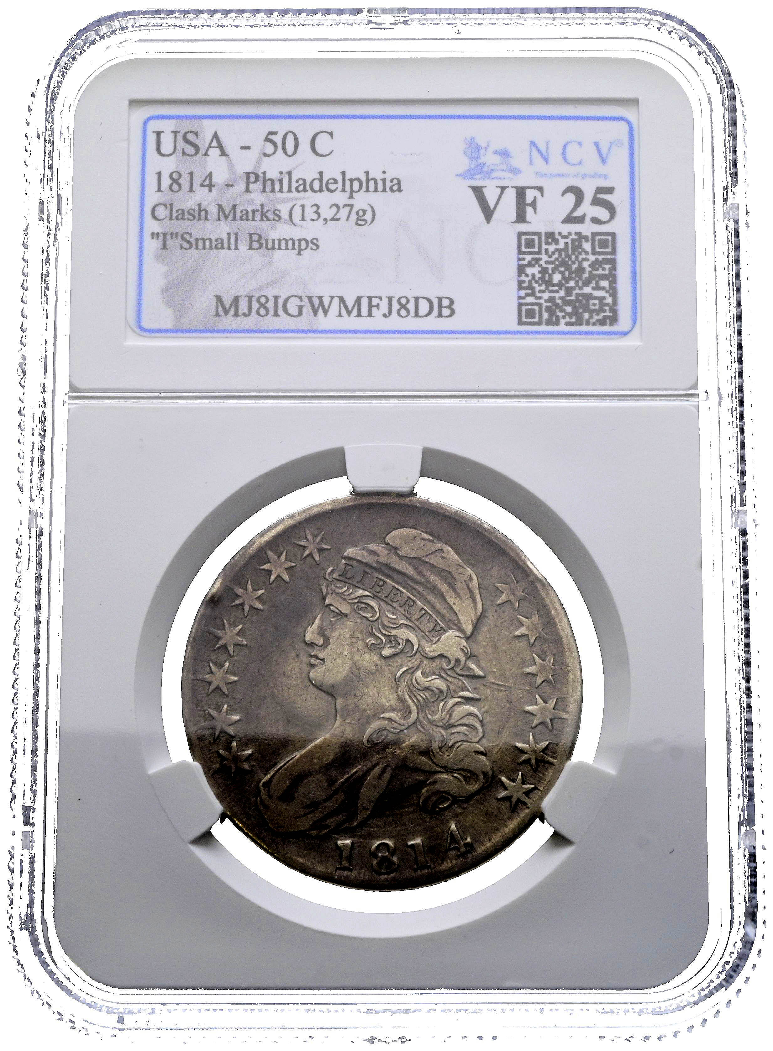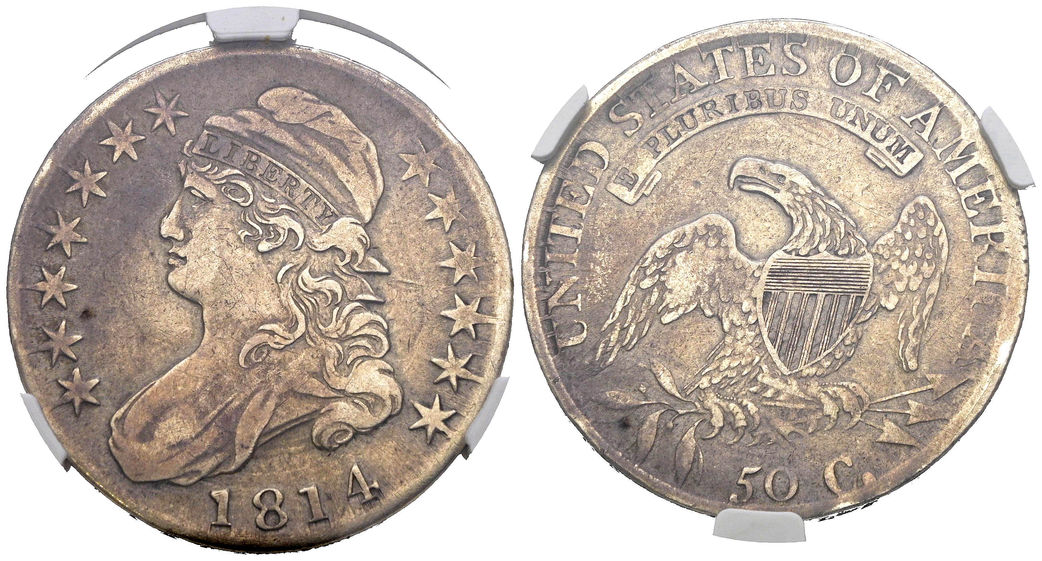 USA. 1/2 Dollar. (Ar. 13.27g/32mm). 1814. Philadelphia. (Km#37). Draped Bust. Encapsulated by NCV VF 25.
