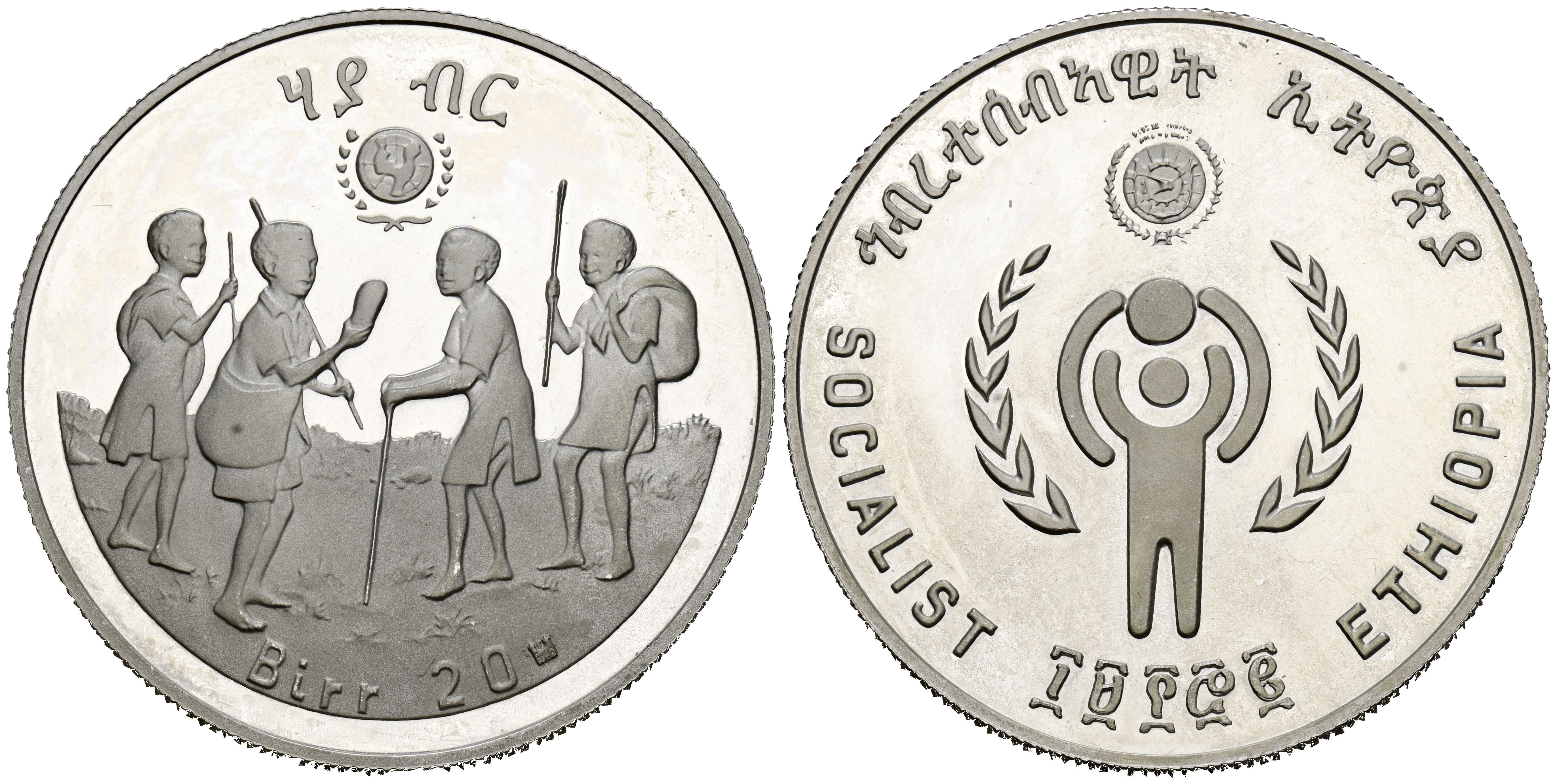 ETHIOPIA. 20 Birr. (Ar. 23.20g/39mm). 1980. International Year of the Child (1979). (Km#54). PROOF. Scarce.
