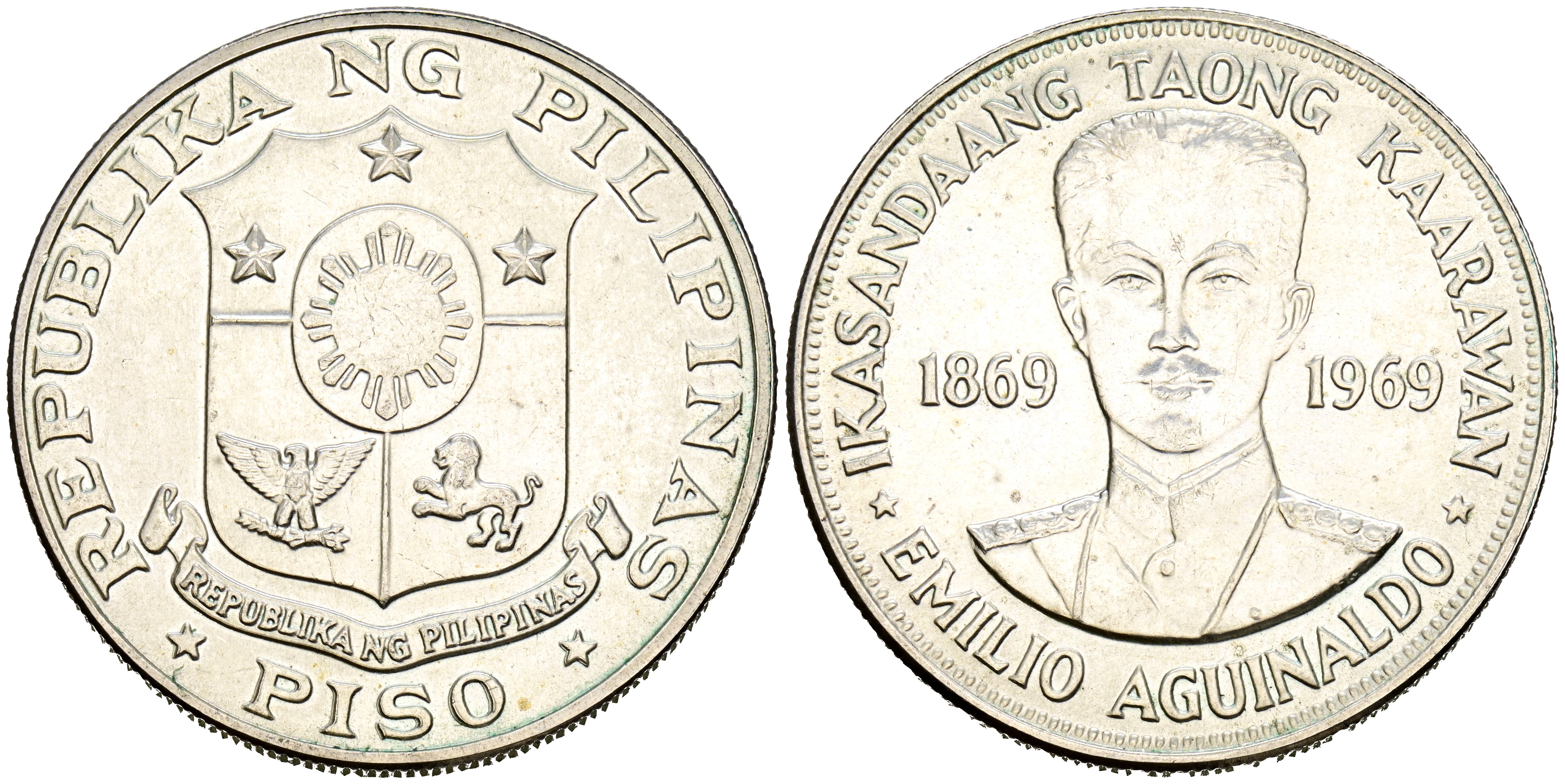 PHILIPPINES. 1st Floor. (Ar. 26.42g/38mm). 1969. Centenary of the birth of Emilio Aguinaldo. (Km#201). Extremely Fine-.