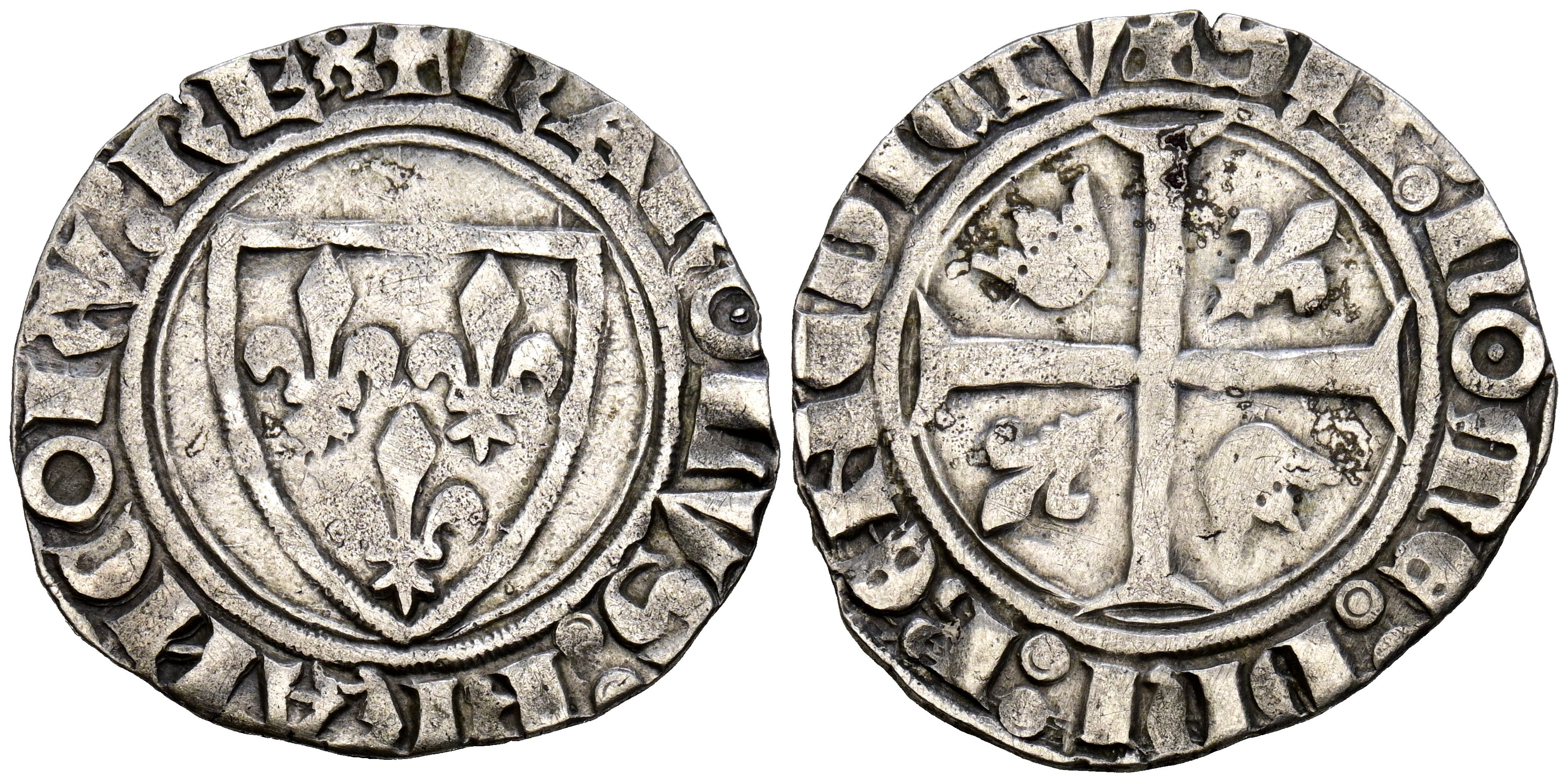 English FRANCE, Charles VI (1380-1422). Blanc Guenar. (Ar. 3.24g/25mm). (Duplessy 377). Very Fine.