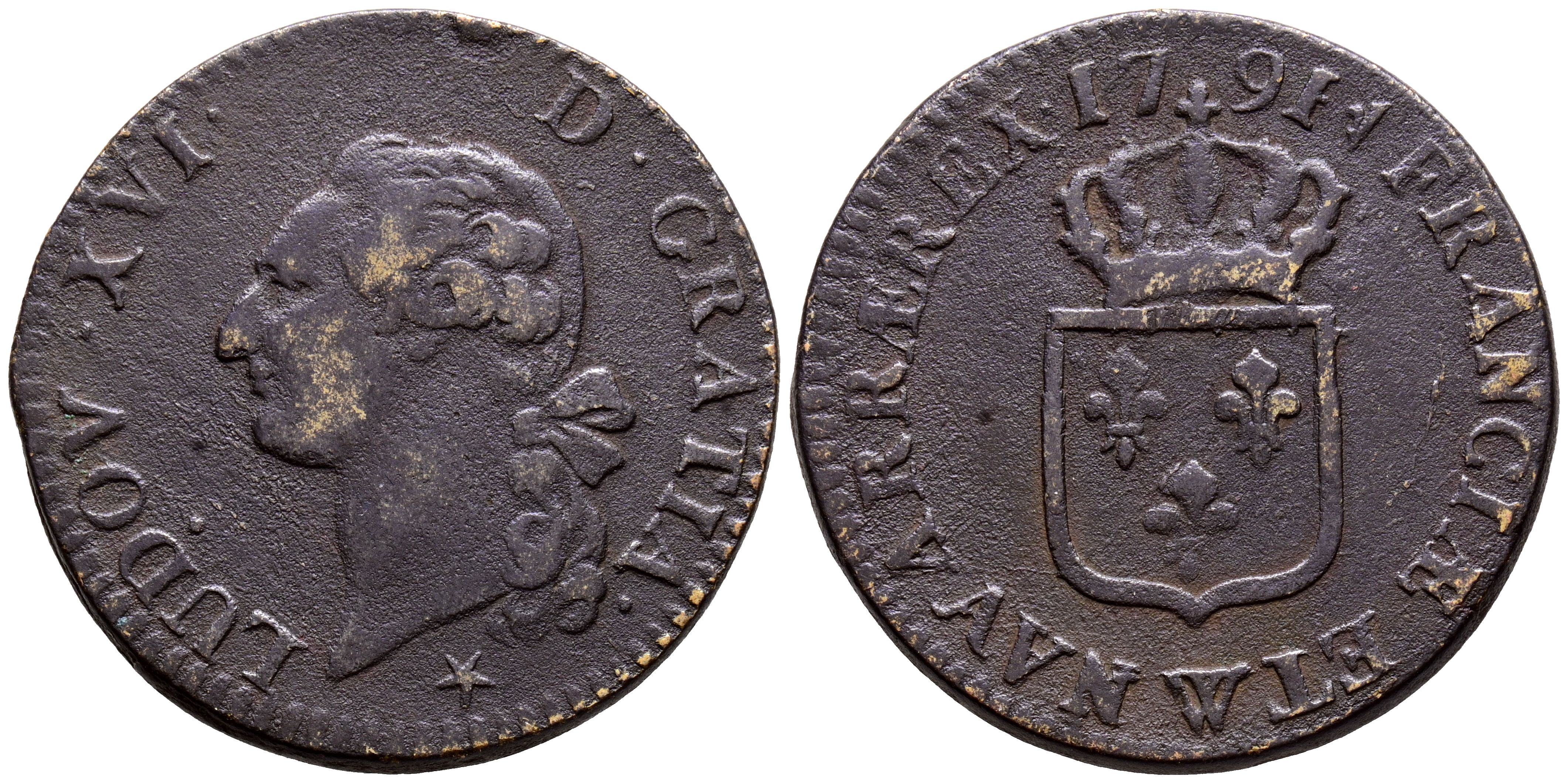 FRANCE, Louis XVI. 1 Sol. (Ae. 11.89g/30mm). 1791. Lille. (Duplessy 1715). VF. An attractive example for this mint.