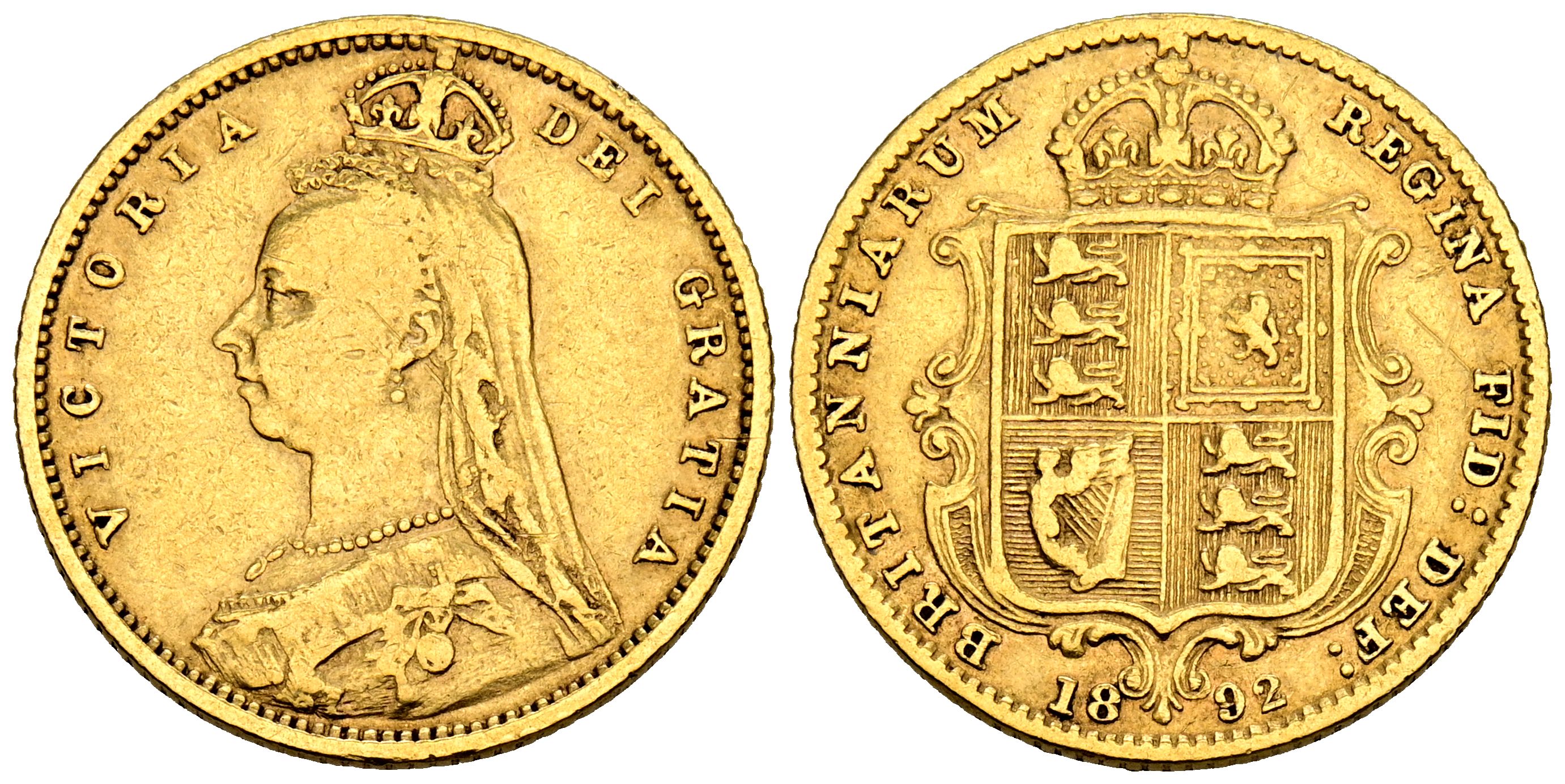GREAT BRITAIN, Queen Victoria. 1/2 Sovereign. (Au. 3.89g/19mm). 1892. (Km#766). Very Fine-.