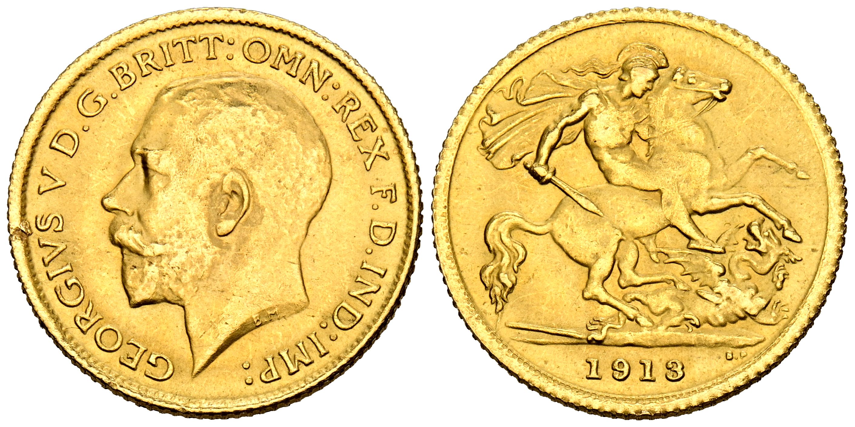 GREAT BRITAIN, George V. 1/2 Sovereign. (Au. 4.00g/19mm). 1913. (Km#819). Extremely Fine-.