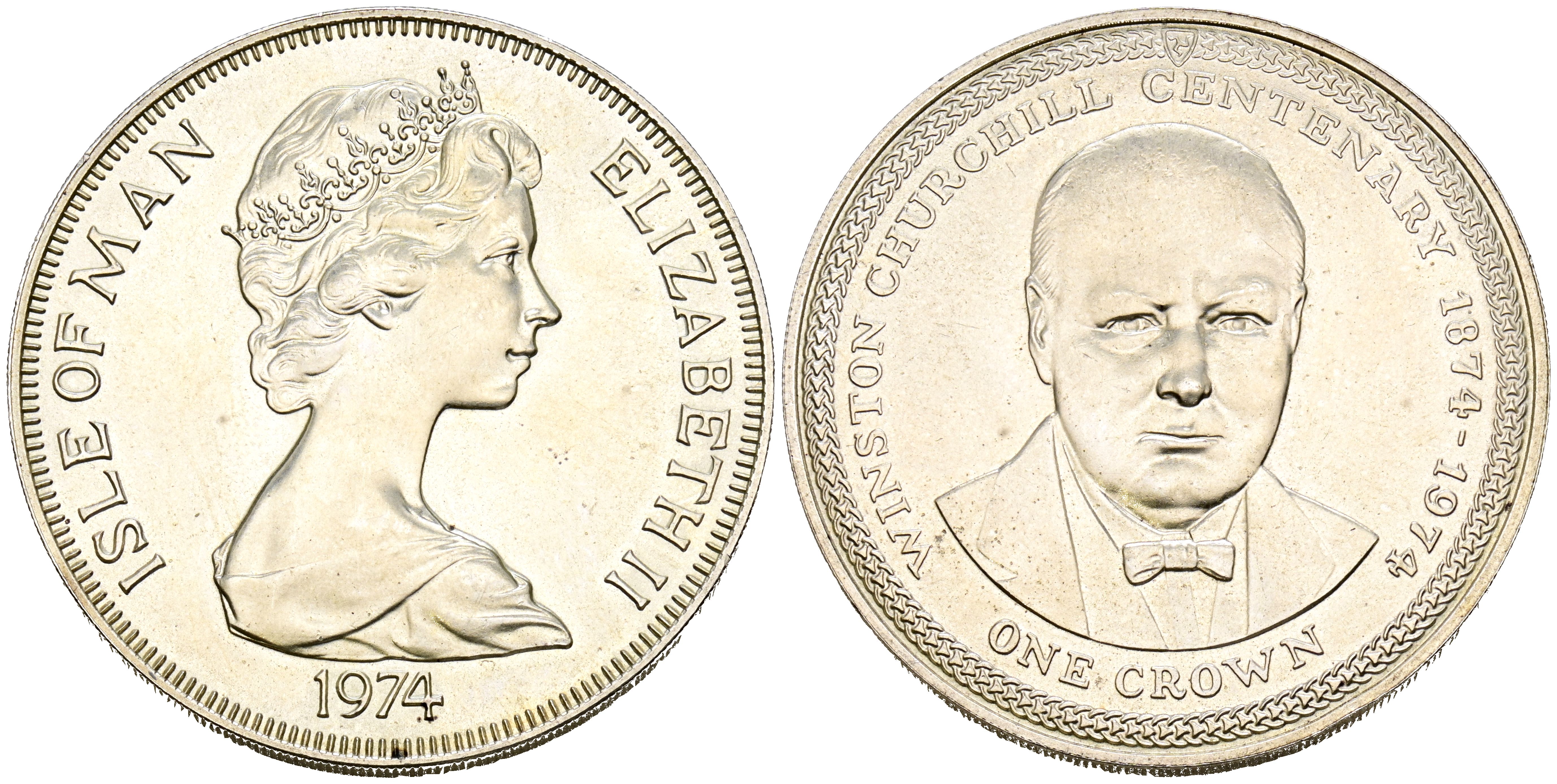 ISLE OF MAN. 1 Crown. (Ar. 28.47g/39mm). 1974. Centenary of the birth of W. Churchill. (Km#30a). Good Extremely Fine.