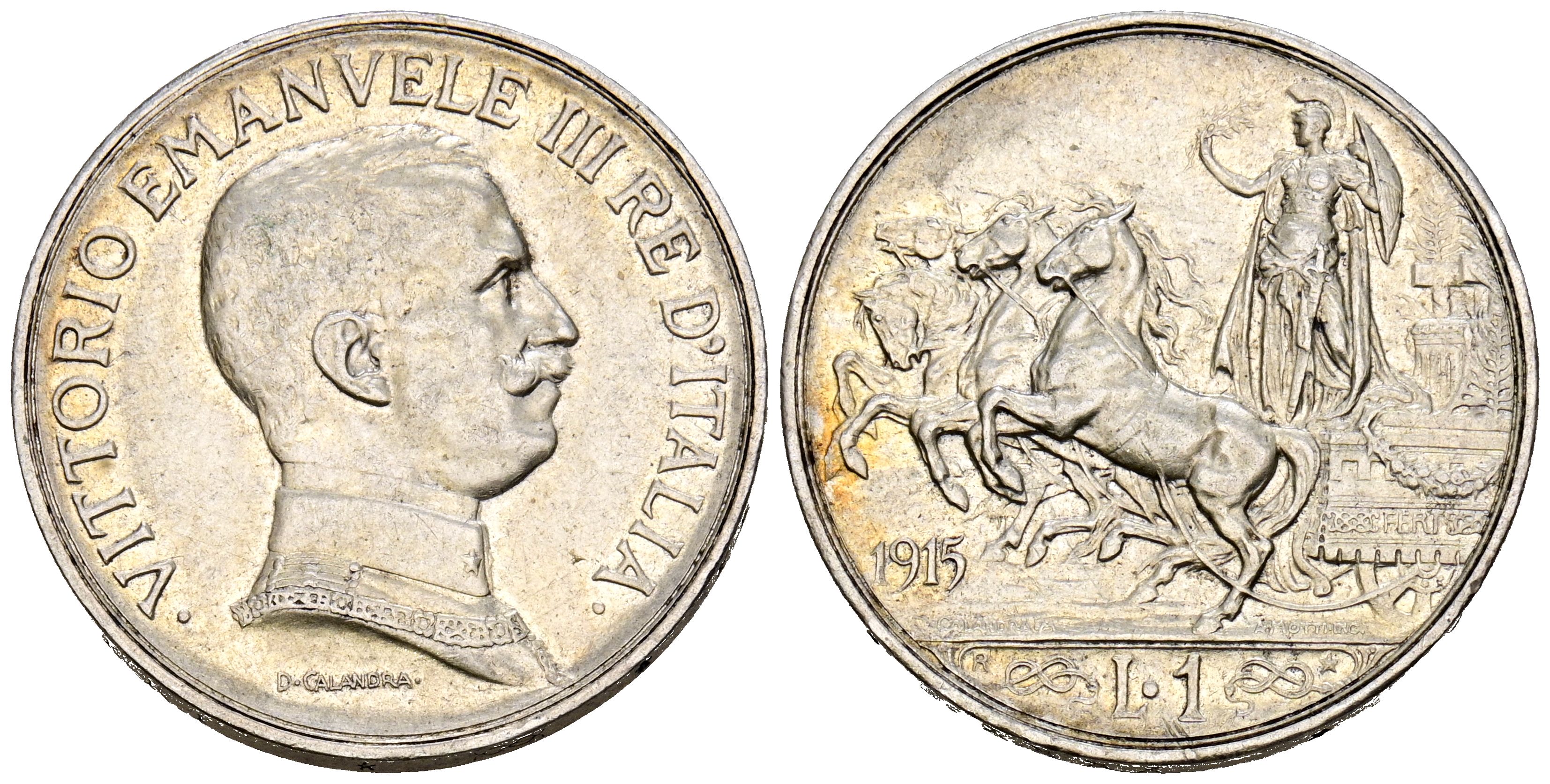 ITALY, Victor Emmanuel III. 1 Lira (Ar. 5.00g/23mm). 1915. Rome. (Km#57). Extremely Fine.