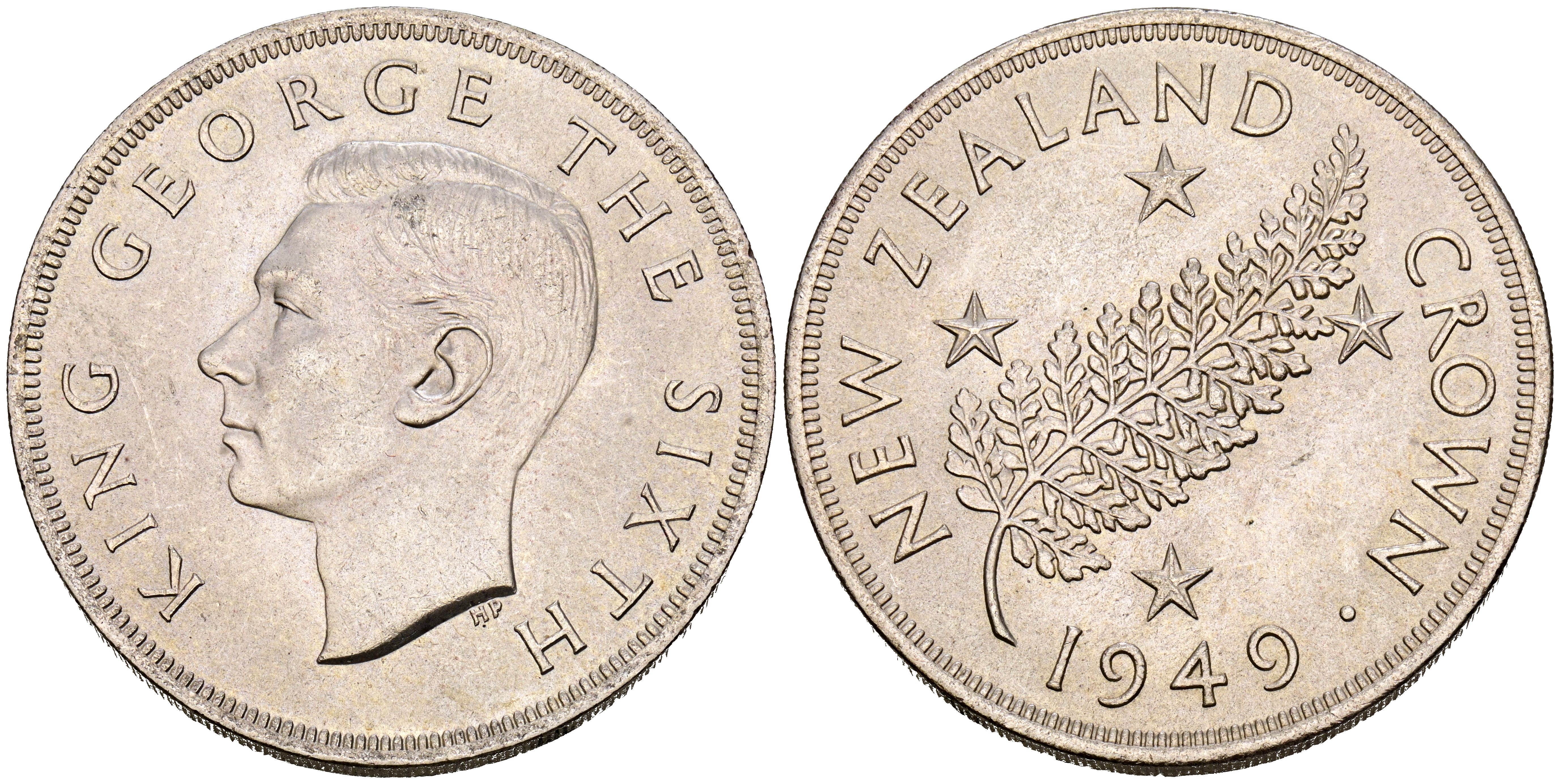 English NEW ZEALAND, George VI. 1 Crown. (Ar. 28.28g/39mm). 1949. (Km#22). Good Extremely Fine.