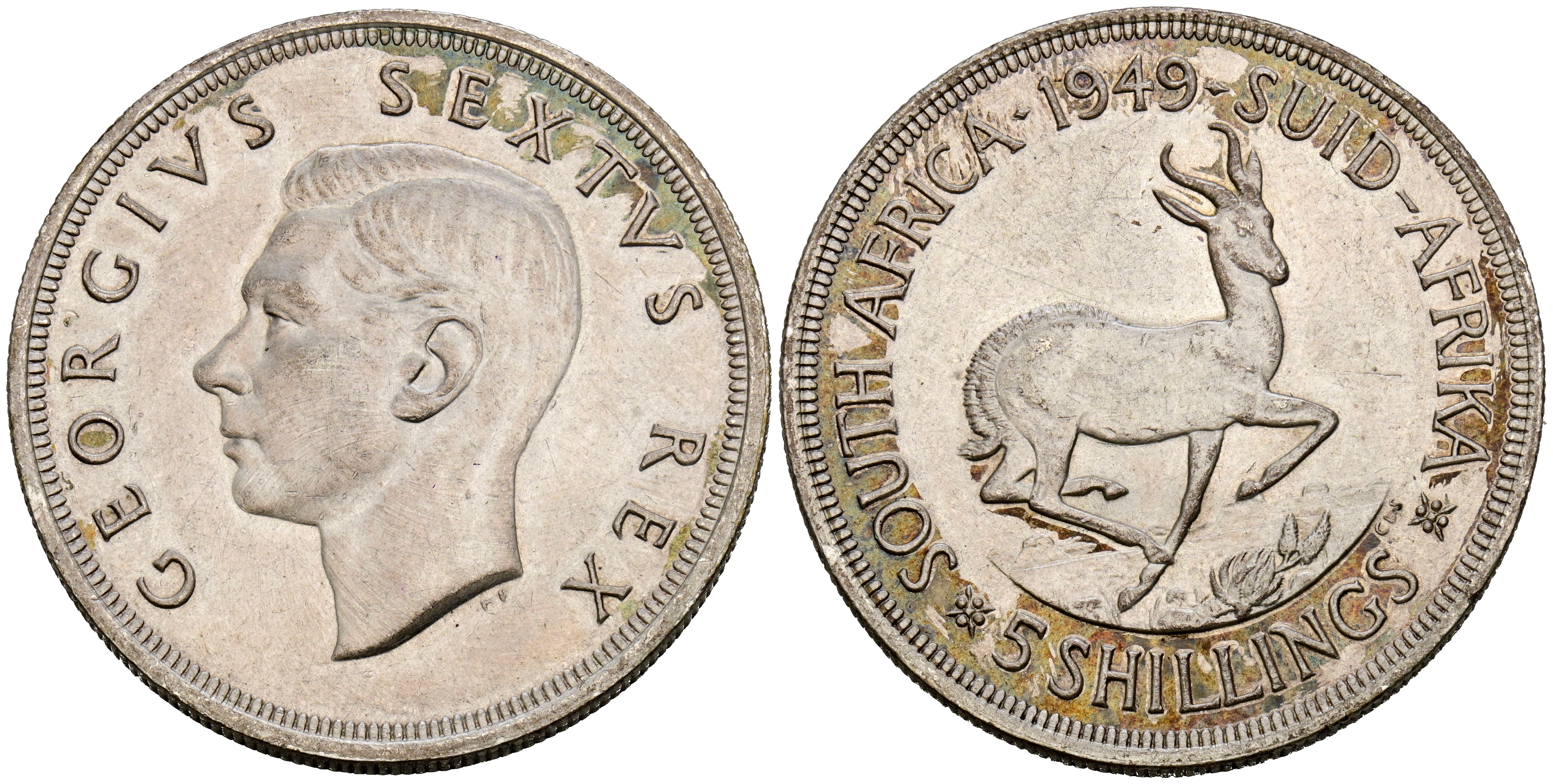 SOUTH AFRICA, George VI. 5 Shillings. (Ar. 28.32g /39mm). 1949. (Km#40.1). Extremely Fine-.