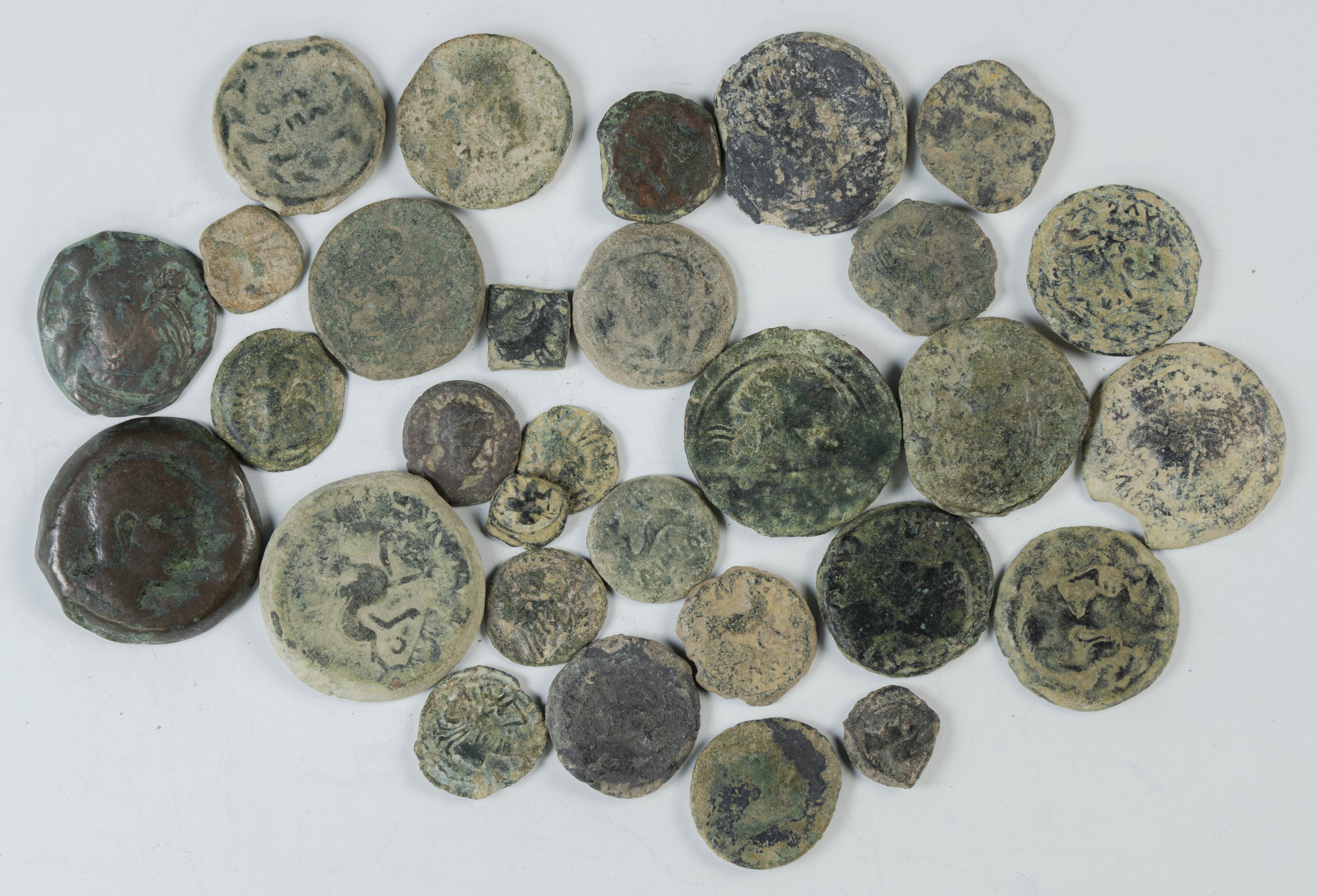 ANCIENT HISPANIA. An integral collection of 30 Iberian bronzes from the mints of Cástulo, Obulco, Cartagonova, Colonia Patricia, and Iulia Traducta, among others. A wide variety of models and variants are noteworthy. Different weights and states of preservation. FOR EXAMINATION.
