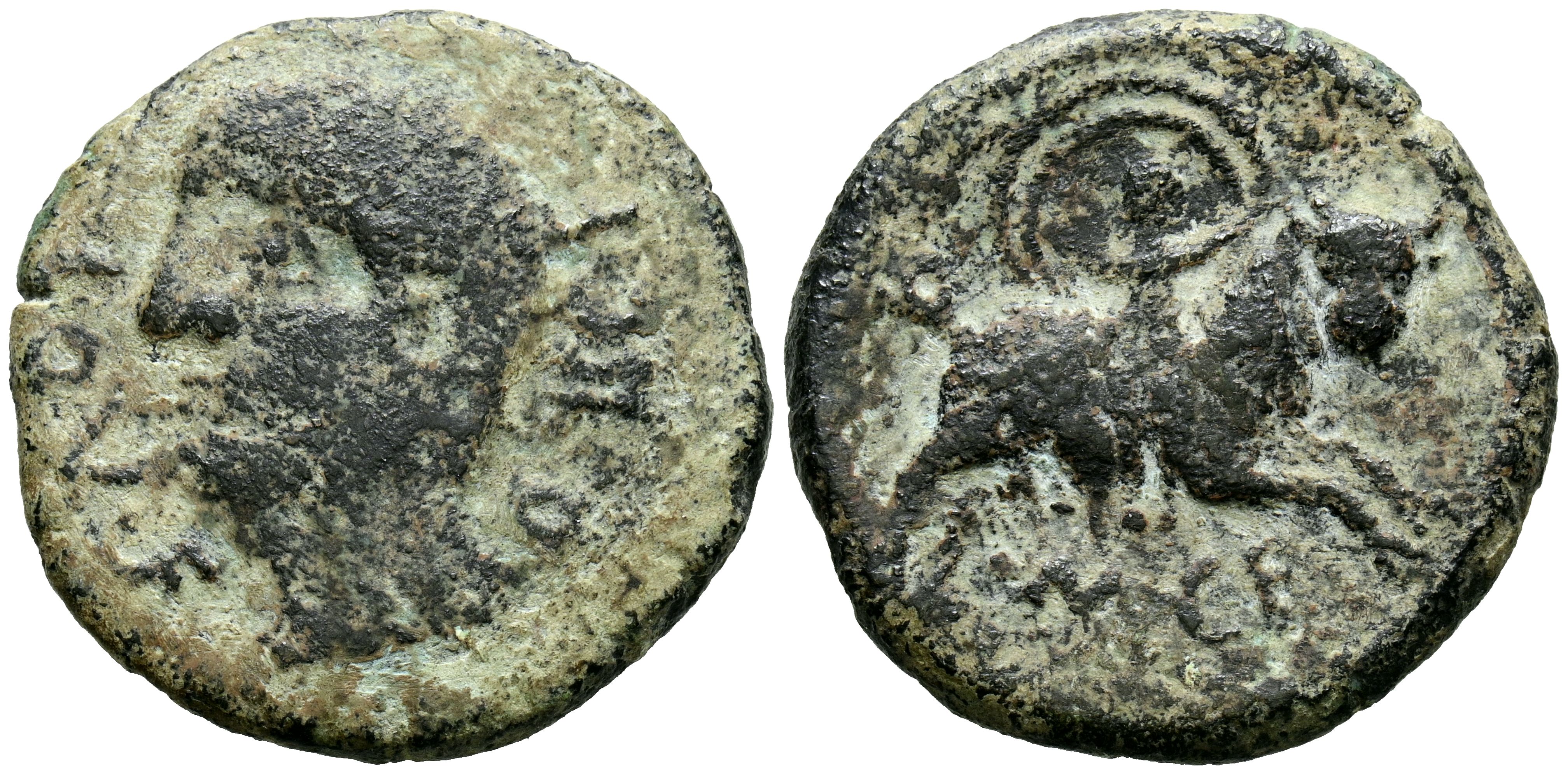 CASTULO (Cazlona, Jaén). As. (Ae. 13.14g/28mm). 180 Fine (FAB-747). Obv: Male head facing left, legend around: L QVL FO IUncirculated F. Rev: Rape of Europa facing right, legend below: PoorF. Very Fine-.
