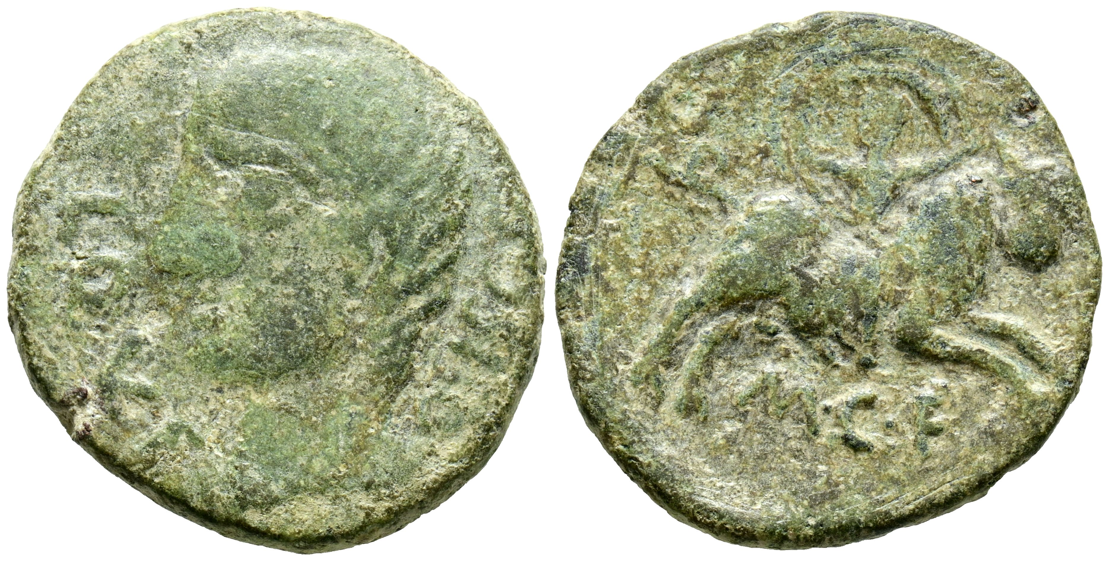 CASTULO (Cazlona, Jaén). As. (Ae. 9.64g/25mm). 180 Fine (FAB-747). Obv: Male head facing left, legend around: L QVL FO IUncirculated F. Rev: Rape of Europa facing right, legend below: PoorF. VF.
