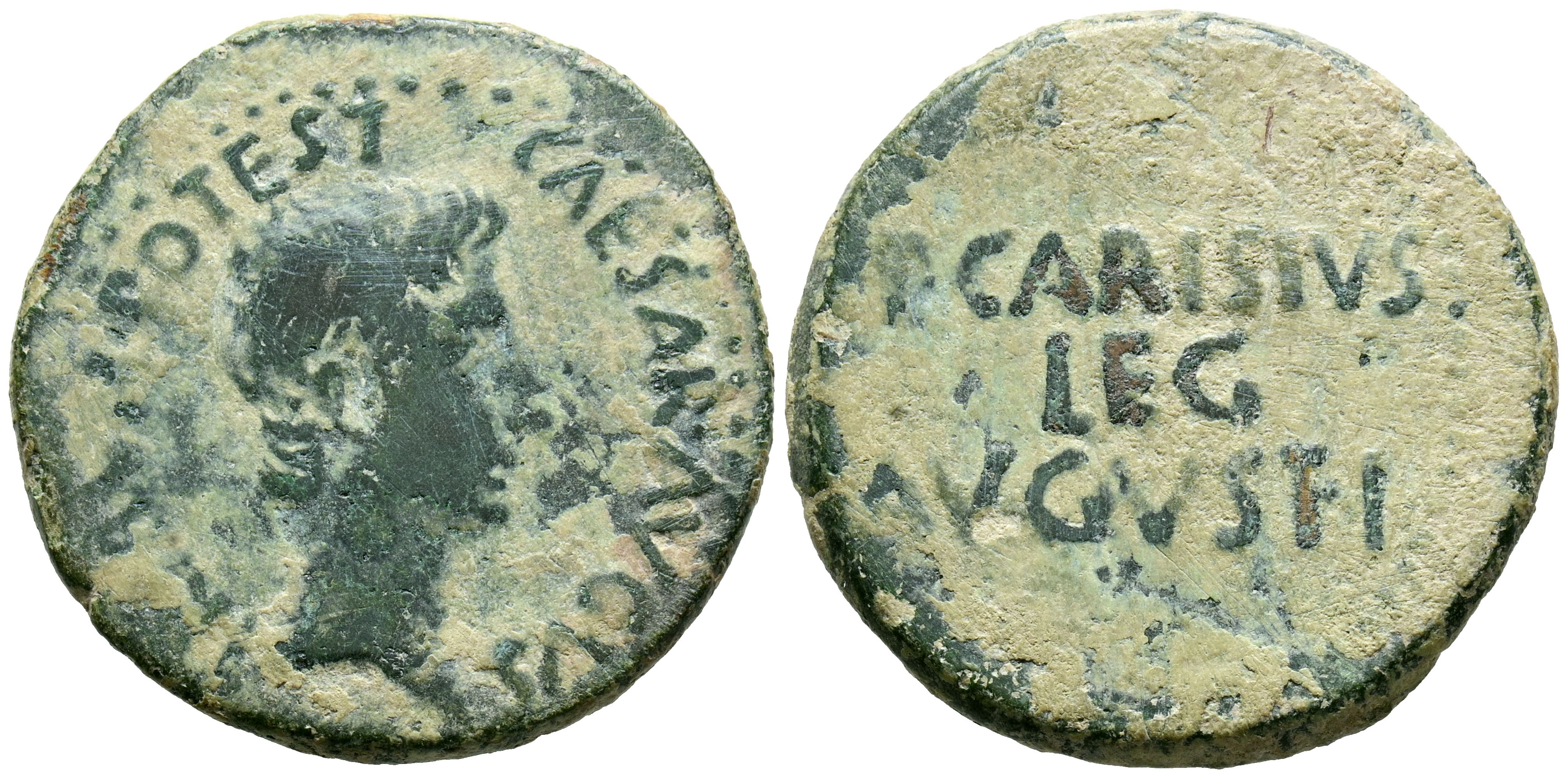 English EMERITA AUGUSTA (Mérida, Badajoz). As. (Ae. 11.04g/28mm). 27 Fine (FAB-986). Anv: Head of Augustus to the right, around legend: CAESAR AVGVS TRIBVN POTEST. Rev: Legend: P CARISIVS LEG AVGVSTI. Very Fine-.