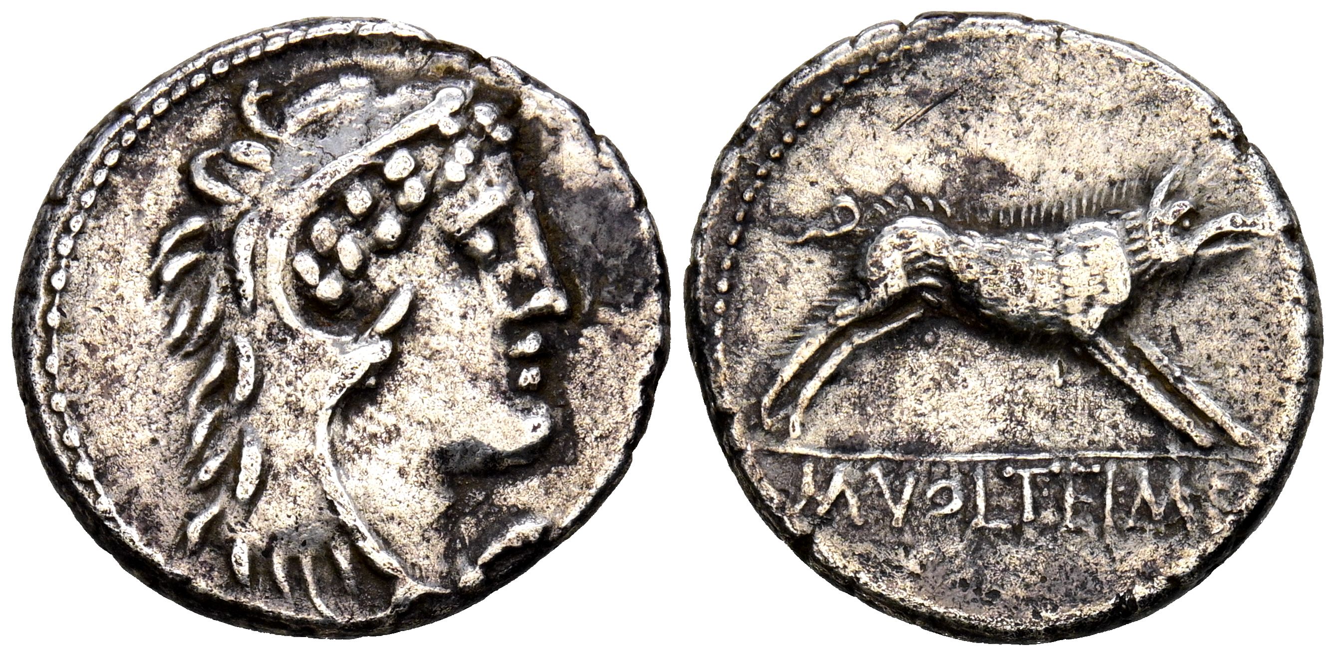 GENS VOLTEIA. Denarius. (Ar. 4.01g/19mm). 78 Fine Rome. (FFC 1233; Crawford 385/2). Obv: Head of Hercules facing right, covered with a lion's skin. Rev: Boar facing right, in exergue: M VOLTEI MF F. VF.