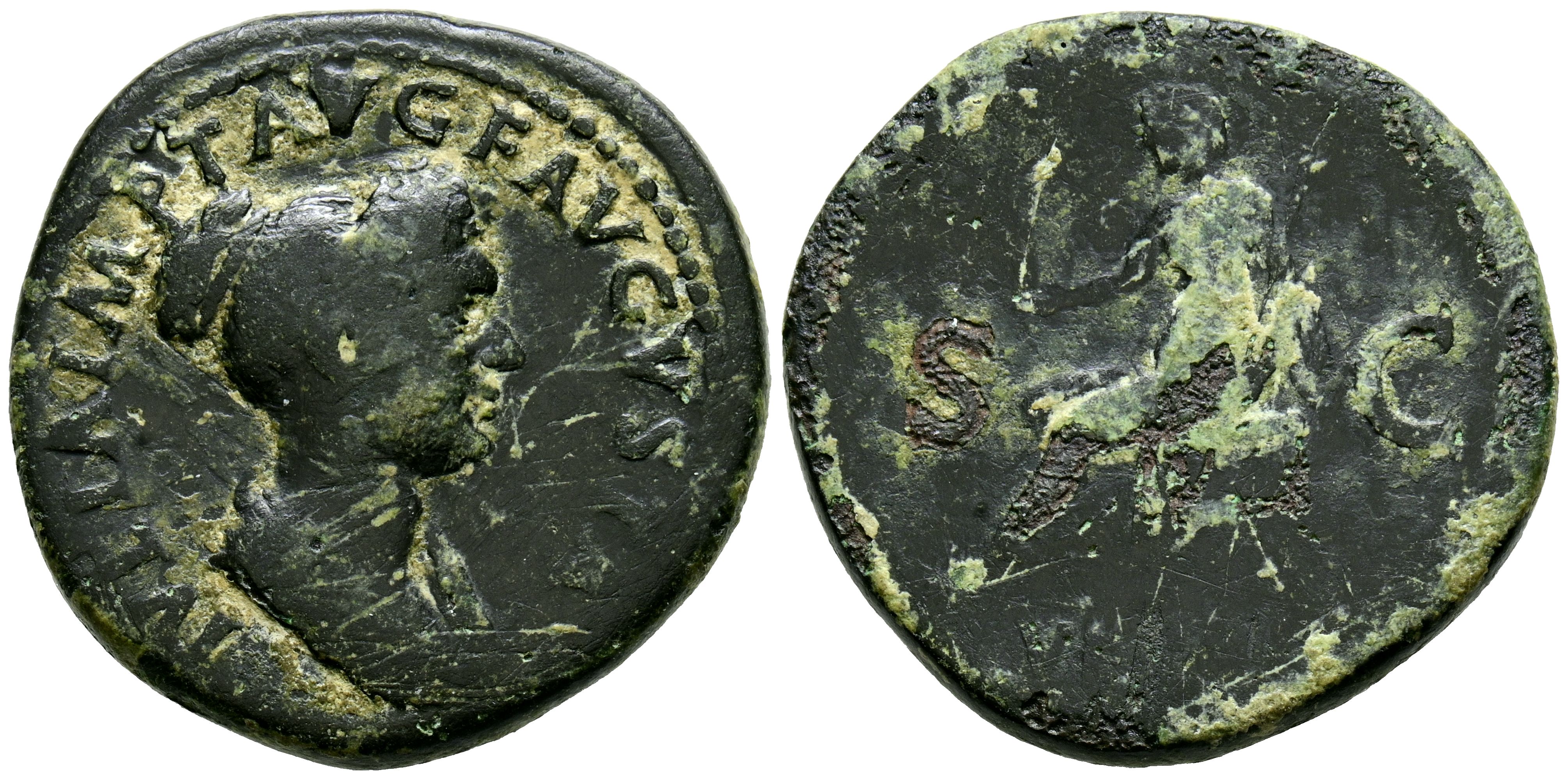 JULIA TITI. Dupondius. (Ae. 13.40g/28mm). 80-81 AD Rome. (RIC 398). Obv: Draped bust of Julia Titi facing right, surrounding legend: IVLIA IMP T AVG F AVGVSTA. Rev: Vesta seated facing left carrying Victory with laurel wreath and sceptre, between Uncirculated, in exergue: VESTA. Good Fine. Rare copy.