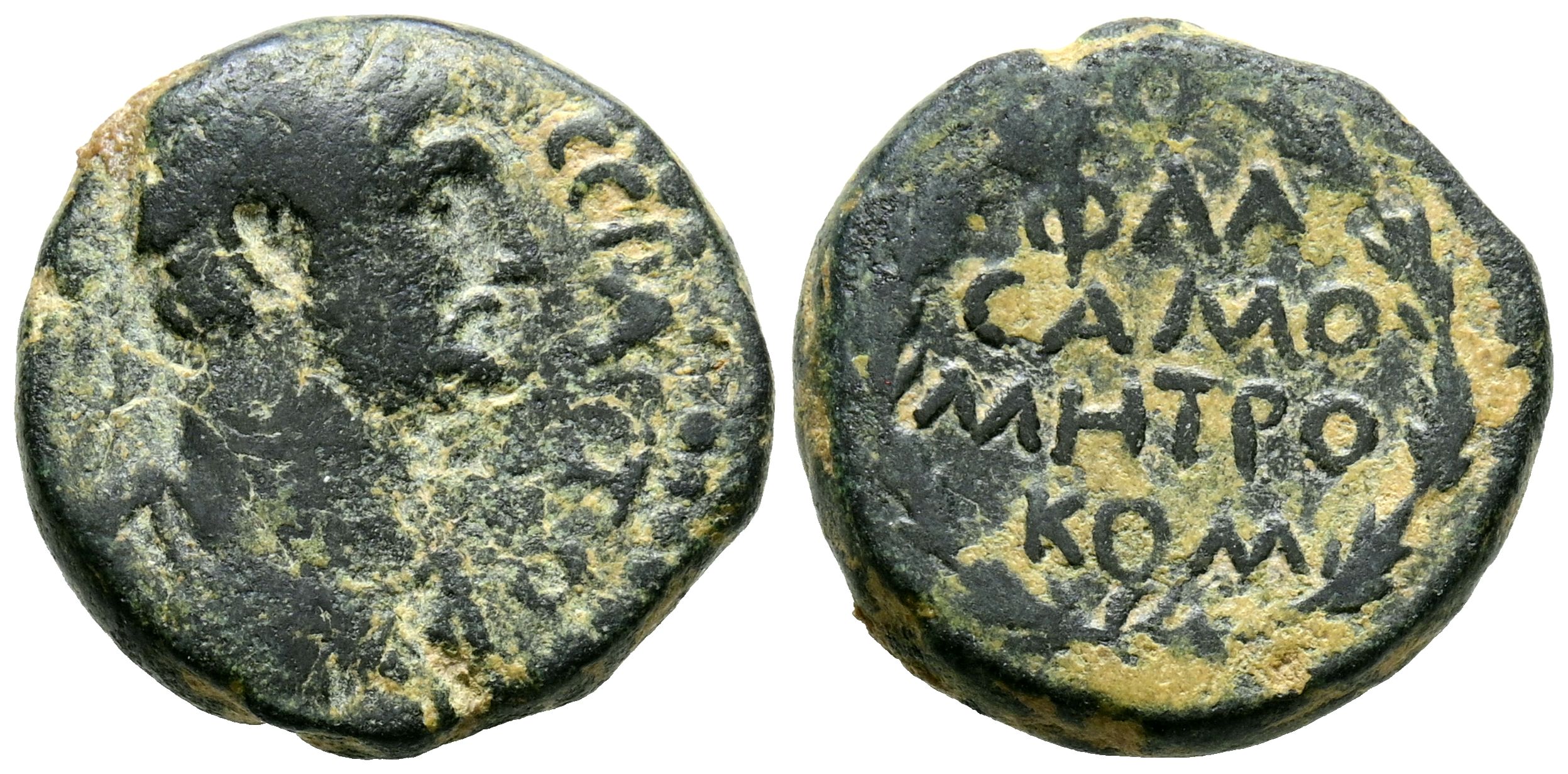 English ADRIAN. Asarion. (Ae. 5.28g/17mm). 132-133 AD Commagene, Samosata. (RPC 3417). Anv: Laureate head of Hadrian on the right, around legend: ΑΔΡΙΑΝΟΣ ΣΕΒΑΣ ΕΤ Ξ. Rev: ΦΛΑ / ΣΑΜΟ / ΜΗΤΡΟ / ΚΟΜ within crown. Very Fine.