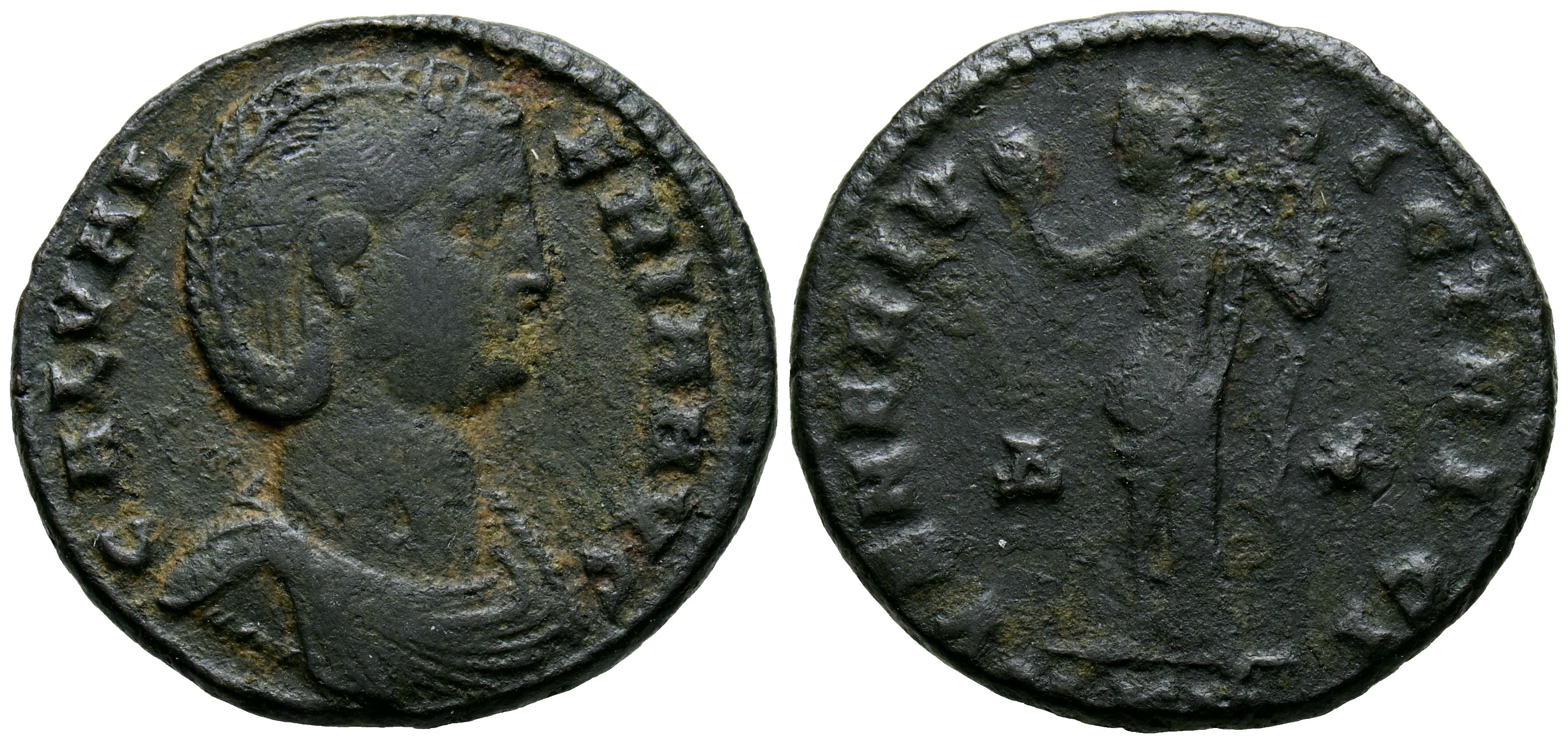 GALLERY VALERIA. Follis. (A. 6.491g/25mm). 309-310 AD Cyzicus. (RIC 58). Obv: Diademed and draped bust of Galeria Valeria facing right, surrounding legend: GAL VALERIA AVG. Rev: Venus standing left holding a globe and sceptre, field: A-star, exergue: KMV, surrounding legend: VENERI VICTRICI. VF/VF-.