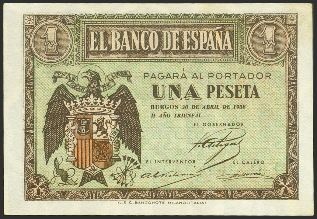 1 Peseta. April 30, 1938. Series F. (Edifil 2021: 428a). Original condition. Uncirculated.