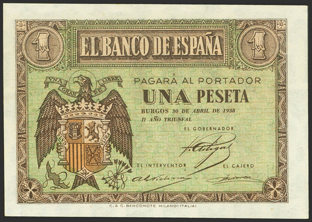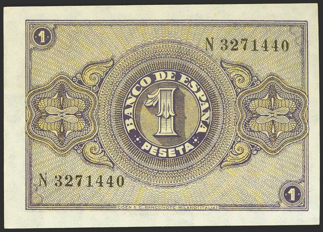 English 1 Peseta. April 30, 1938. Series N, last series issued. (Edifil 2023: 428b). Original condition. UNC.