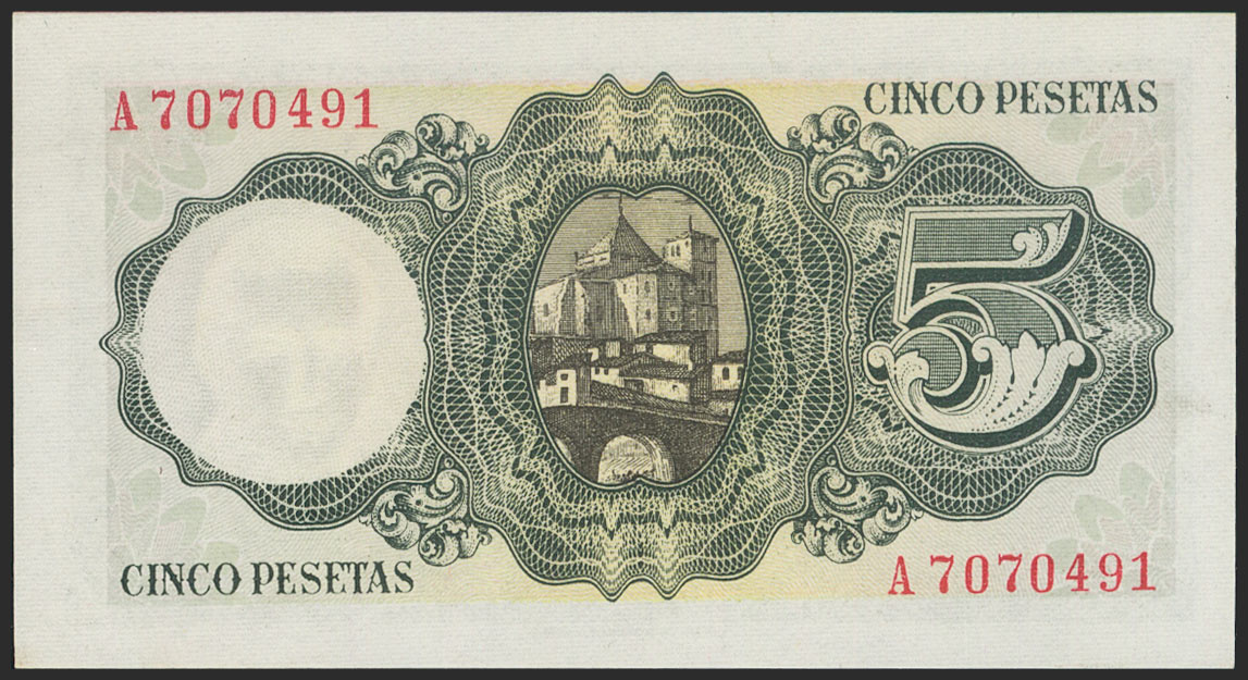 5 Pesetas. August 16, 1951. Series A. (Edifil 2021: 459a). Original finish. Uncirculated-.