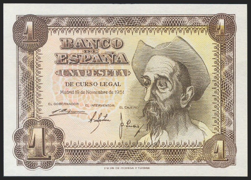 English 1 Peseta. November 19, 1951. Series P and palindromic numbering. (Edifil 2021: 461a). Original finish. Uncirculated.
