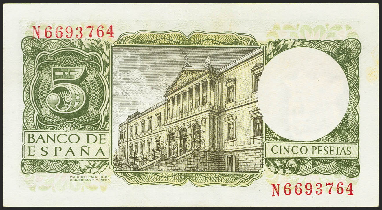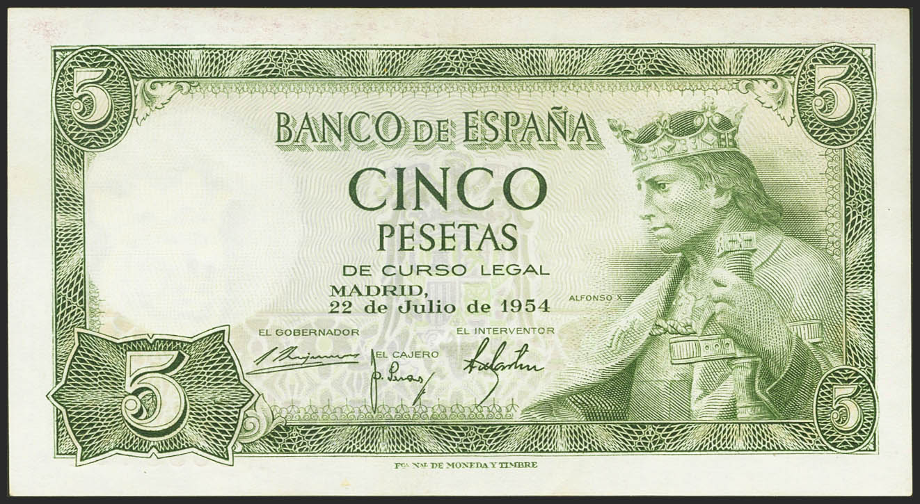 5 Pesetas. July 22, 1954. Series N. (Edifil 2021: 466a). Original finish. Uncirculated-.
