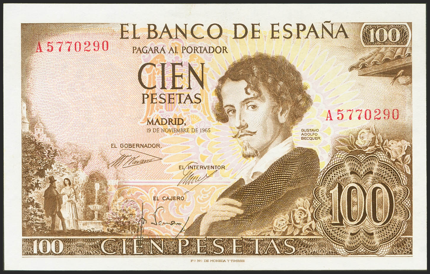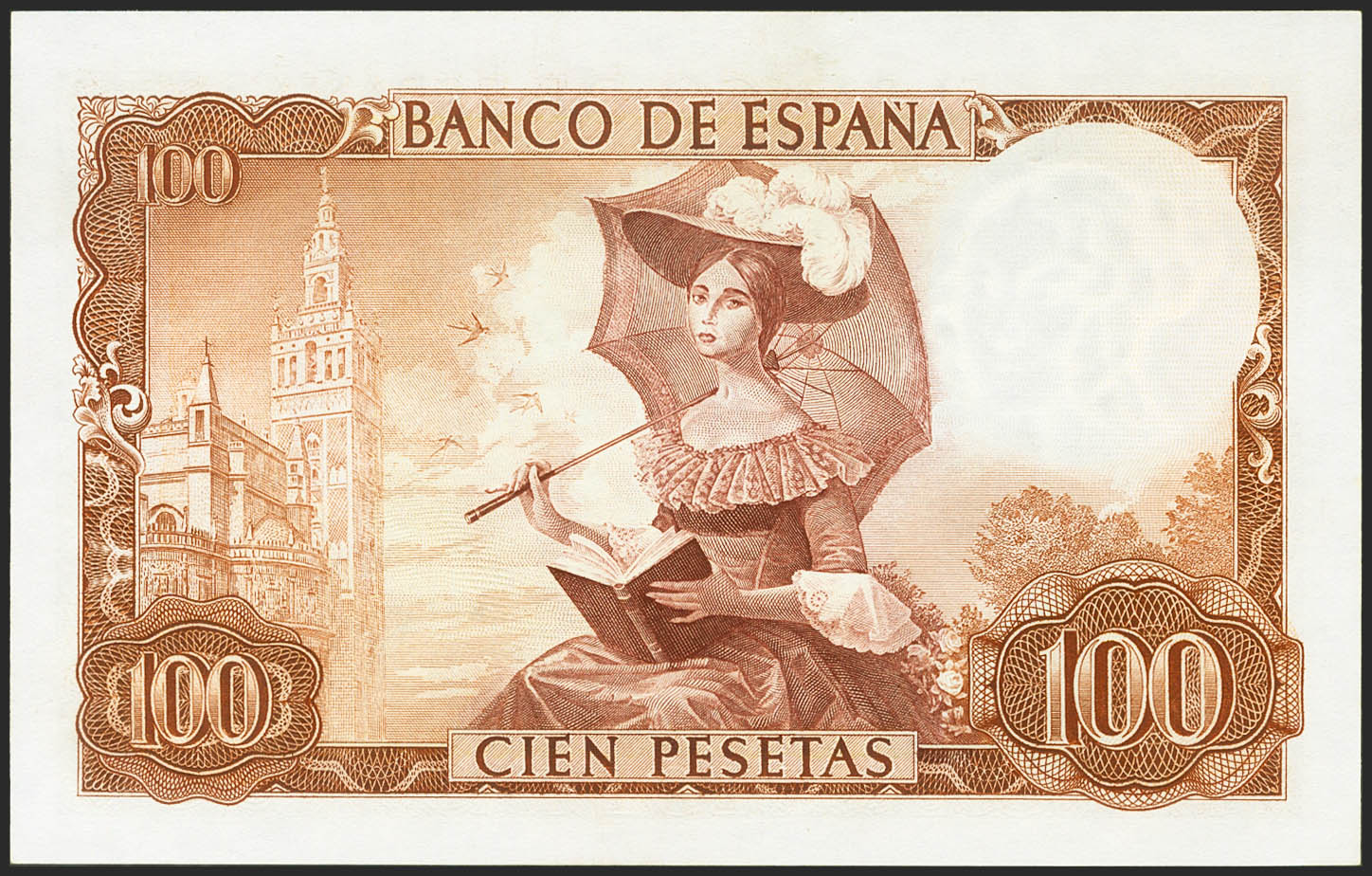 100 Pesetas. November 19, 1965. Series A. (Edifil 2021: 470a). Retains all its original finish. EF+.