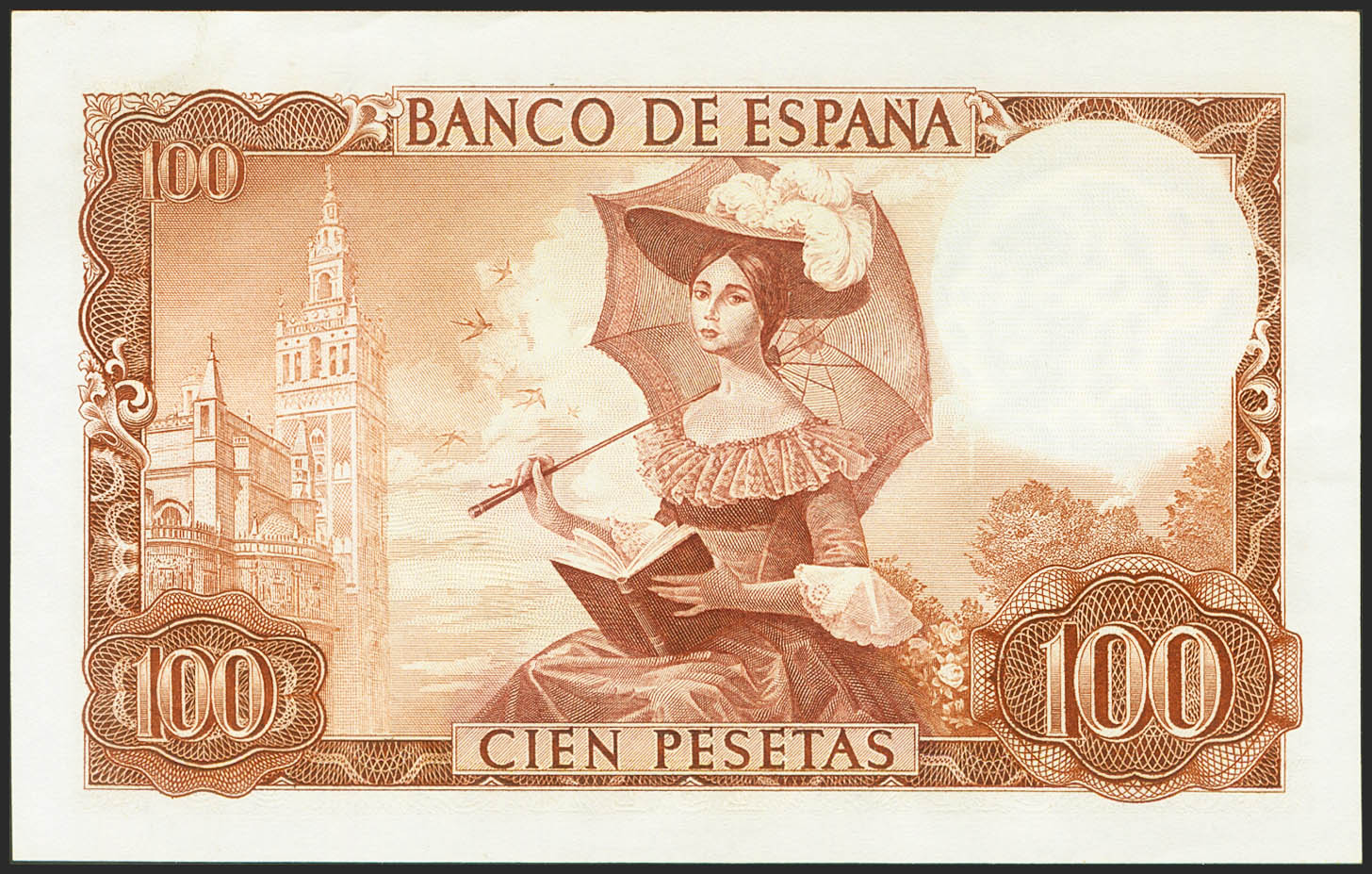 100 Pesetas. November 19, 1965. Series R. (Edifil 2021: 470a). Retains part of its original finish. EF+.