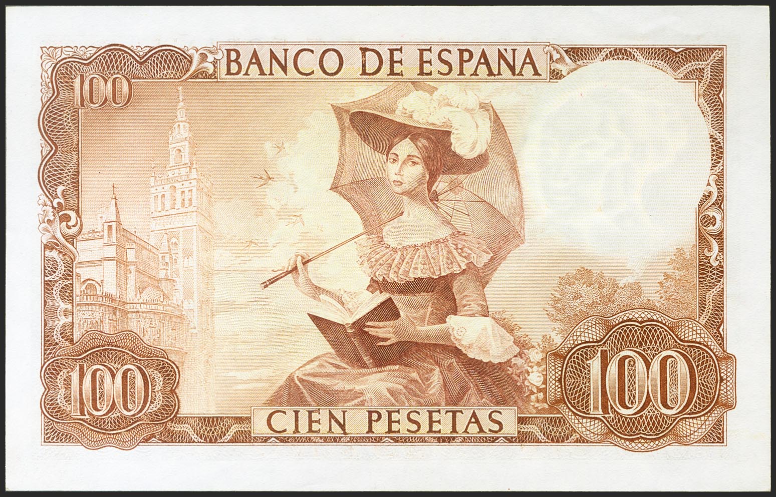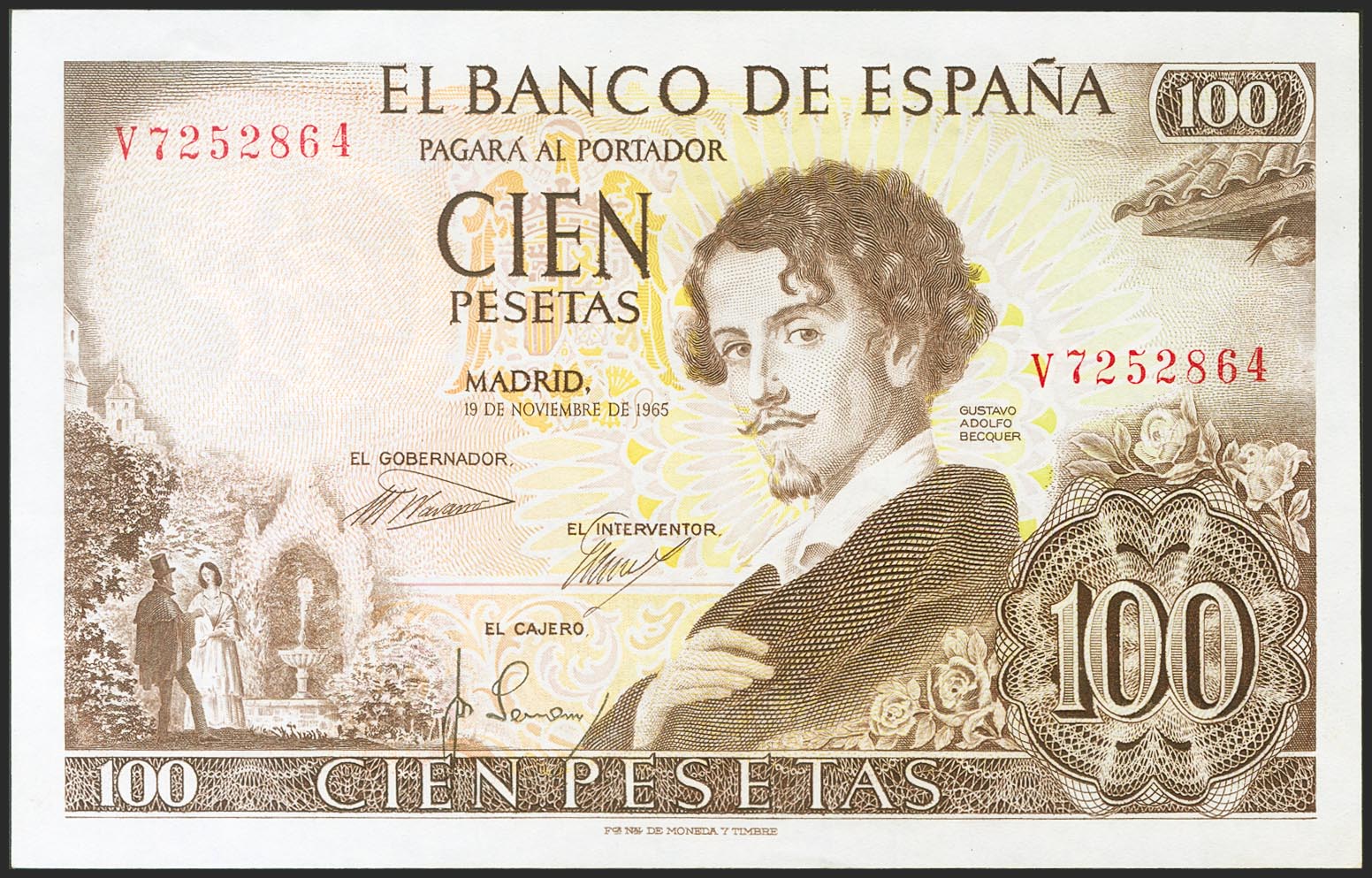 English 100 Pesetas. November 19, 1965. Series V. (Edifil 2021: 470a). Original condition. EF++.