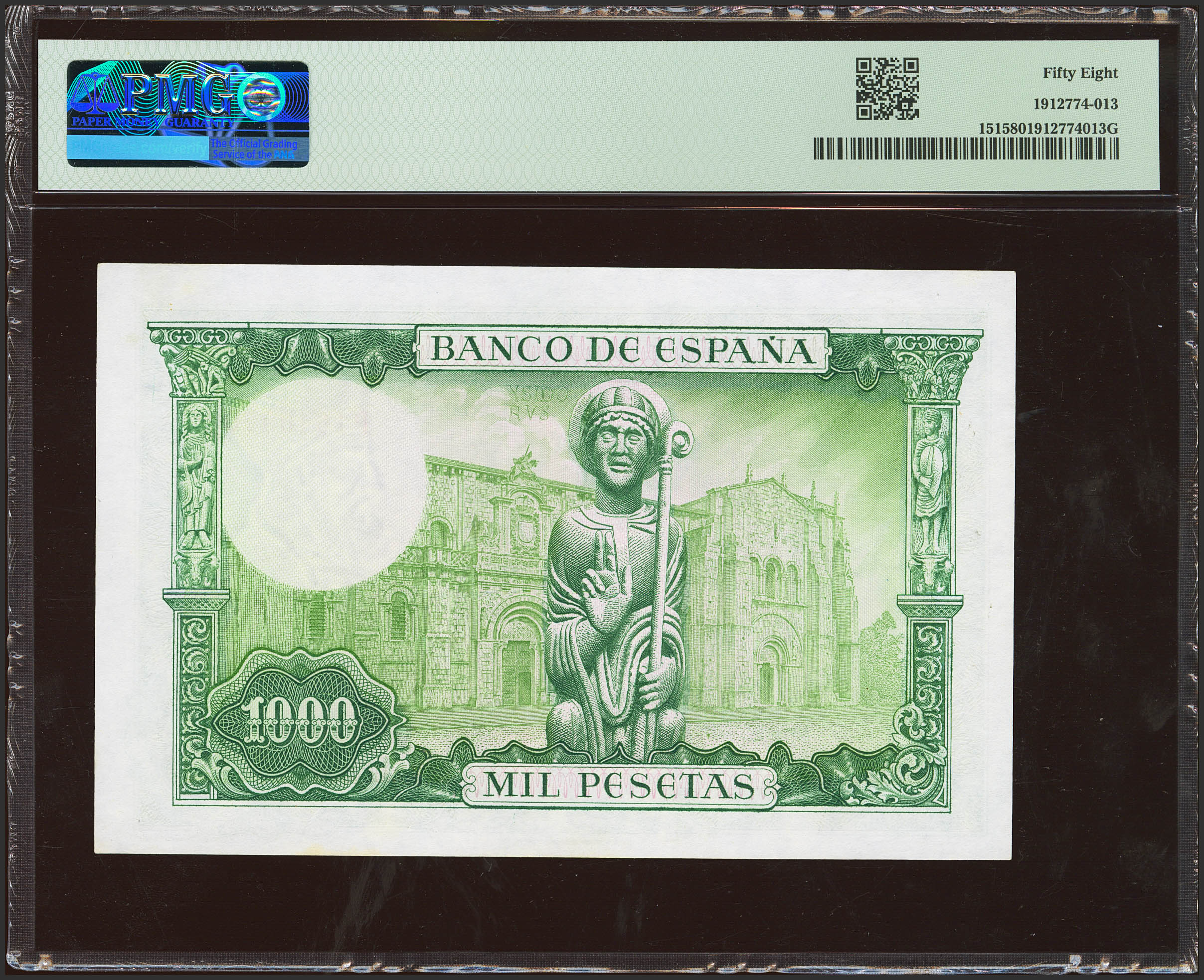 1000 Pesetas. November 19, 1965. Series P. (Edifil 2021: 471b, Pick: 151). Good Extremely Fine+. PMG58 package.