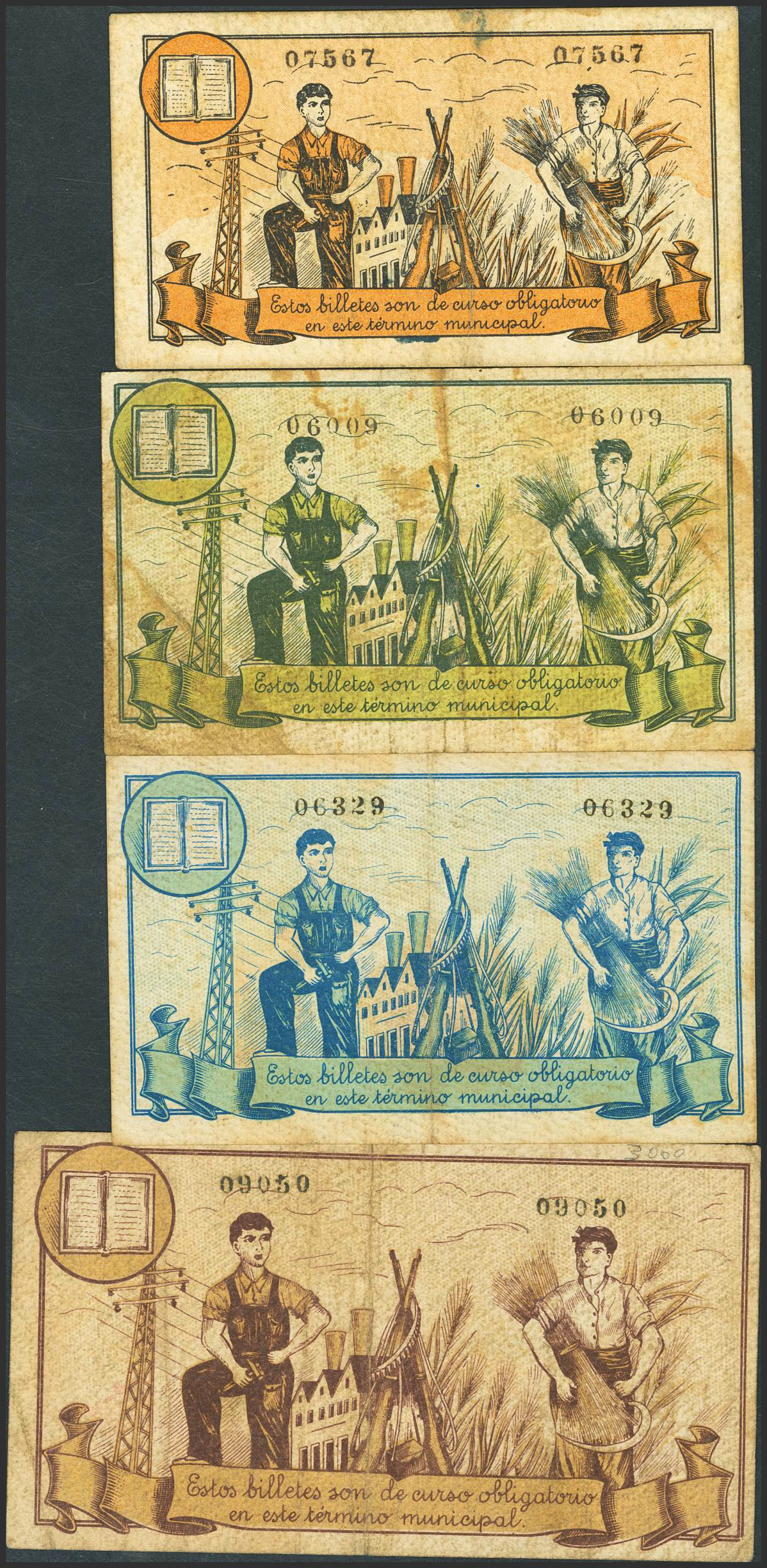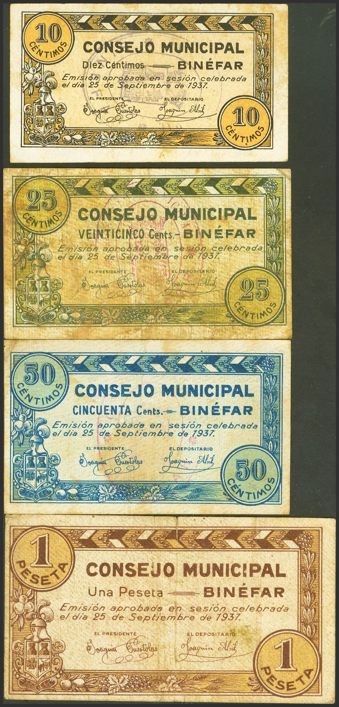 English BINEFAR (HUEUncirculatedA). 10 Centimos, 25 Centimos, 50 Centimos and 1 Peseta. September 25, 1937. (González: 1227, 1228, 1229, 1230). Very Fine/Extremely Fine.