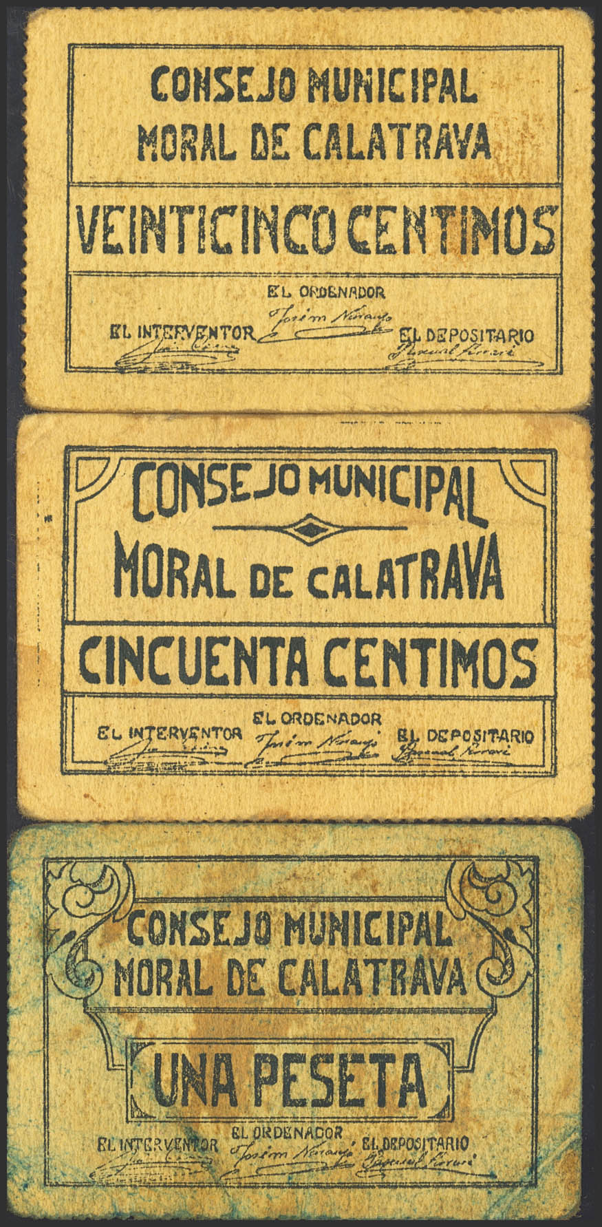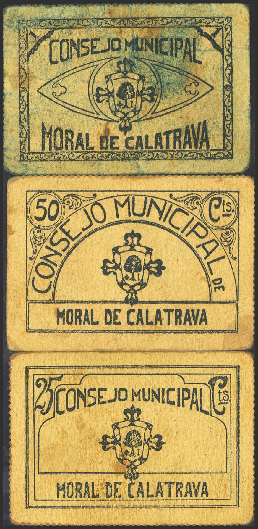 English MORAL DE CALATRAVA (CIUDAD REAL). 25 Centimos, 50 Centimos and 1 Peseta. (circa 1937). (González: 3699/01). Very rare complete series. VF-.