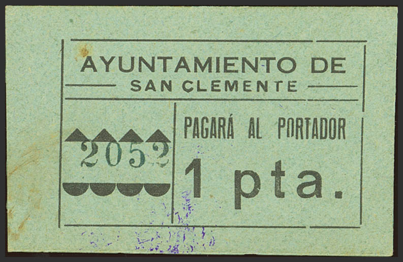 SAN CLEMENTE (CUENCA). 1 Peseta. (circa 1937). (González: 4670). Very rare. EF+.