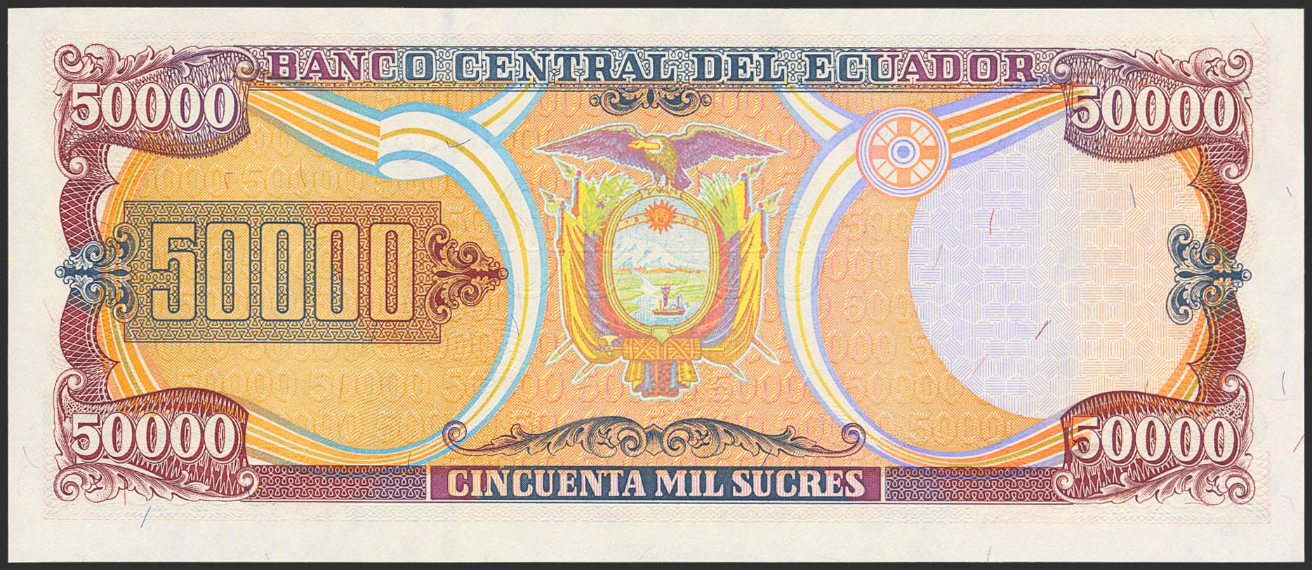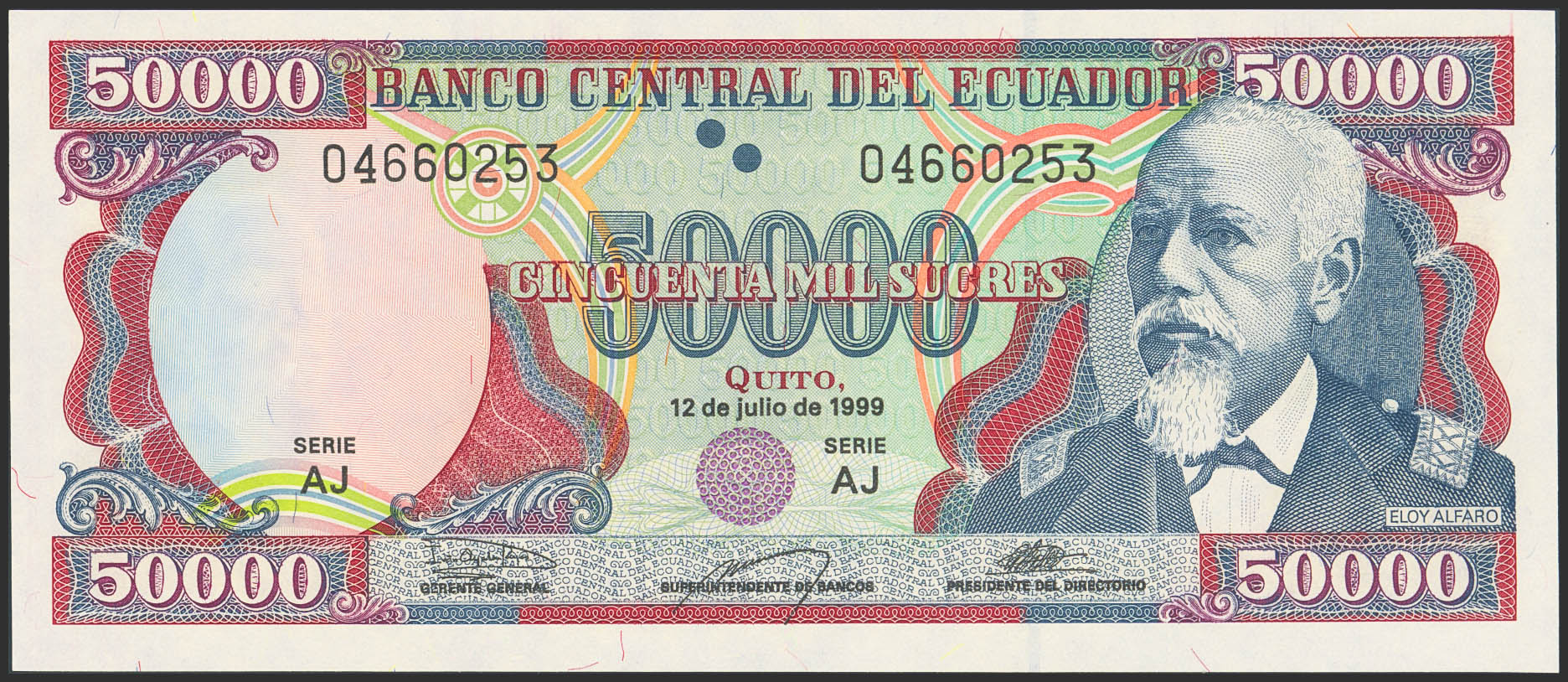 English ECUADOR. 50,000 Sucres. 12 July 1999. (Pick: 130). Uncirculated.