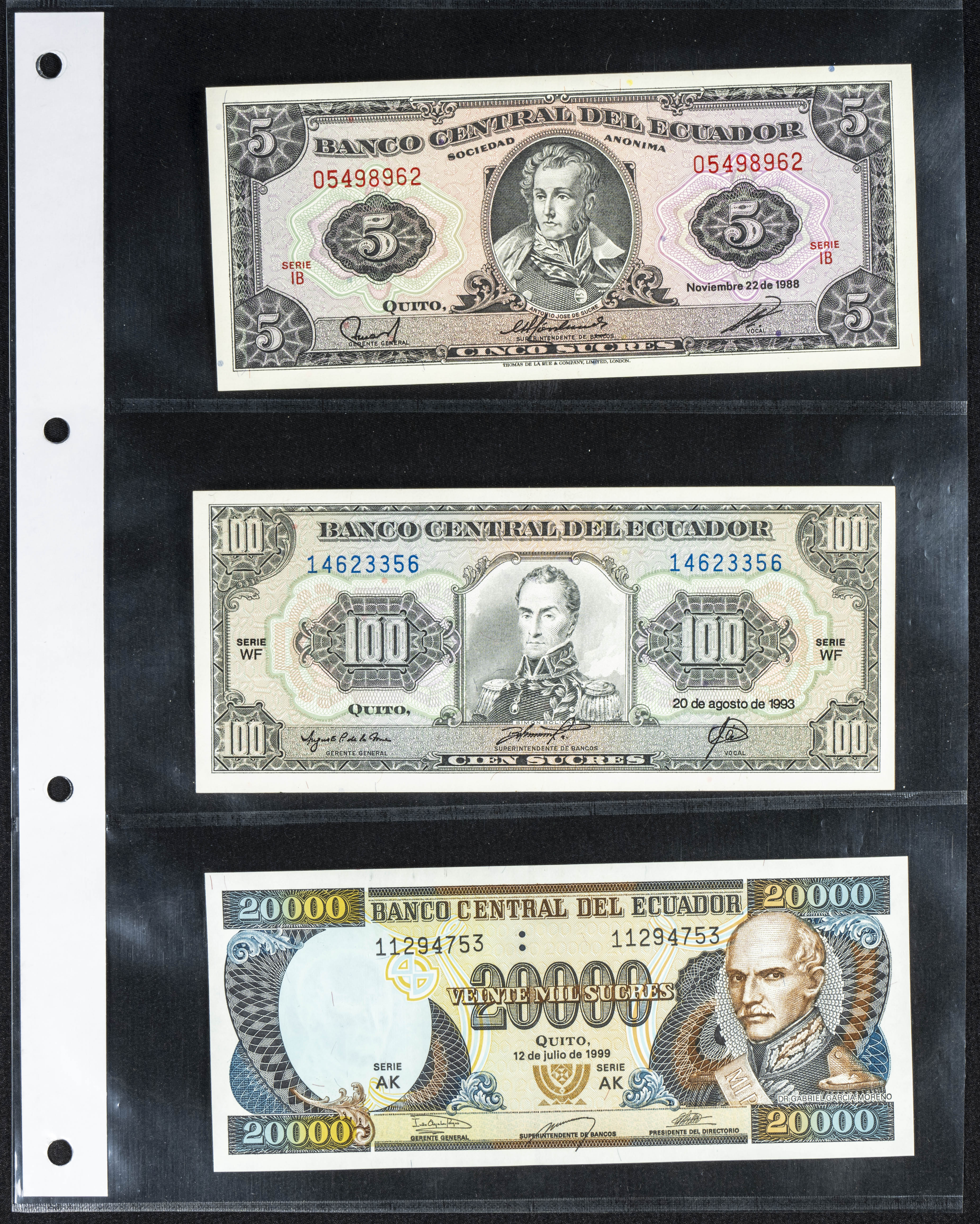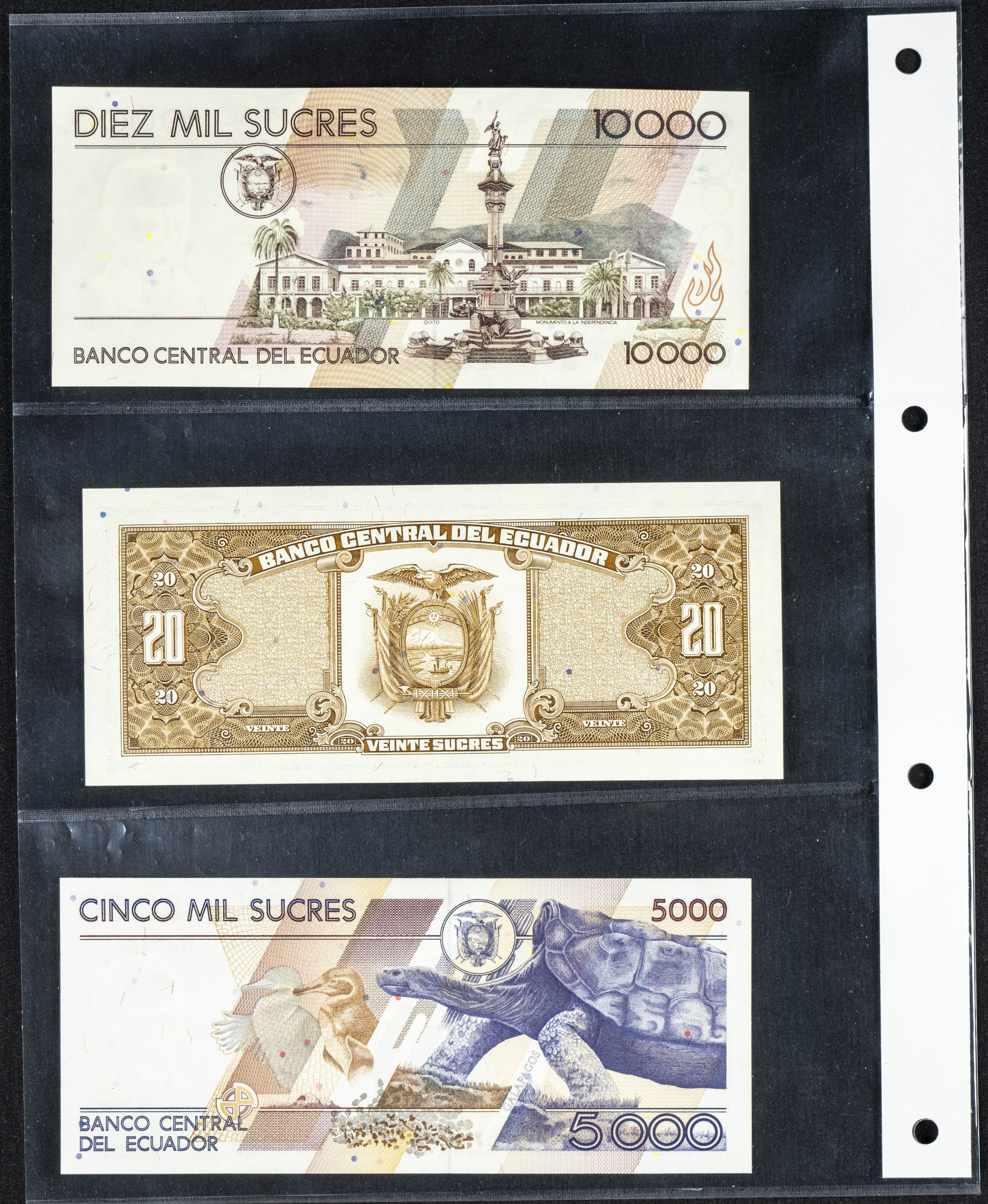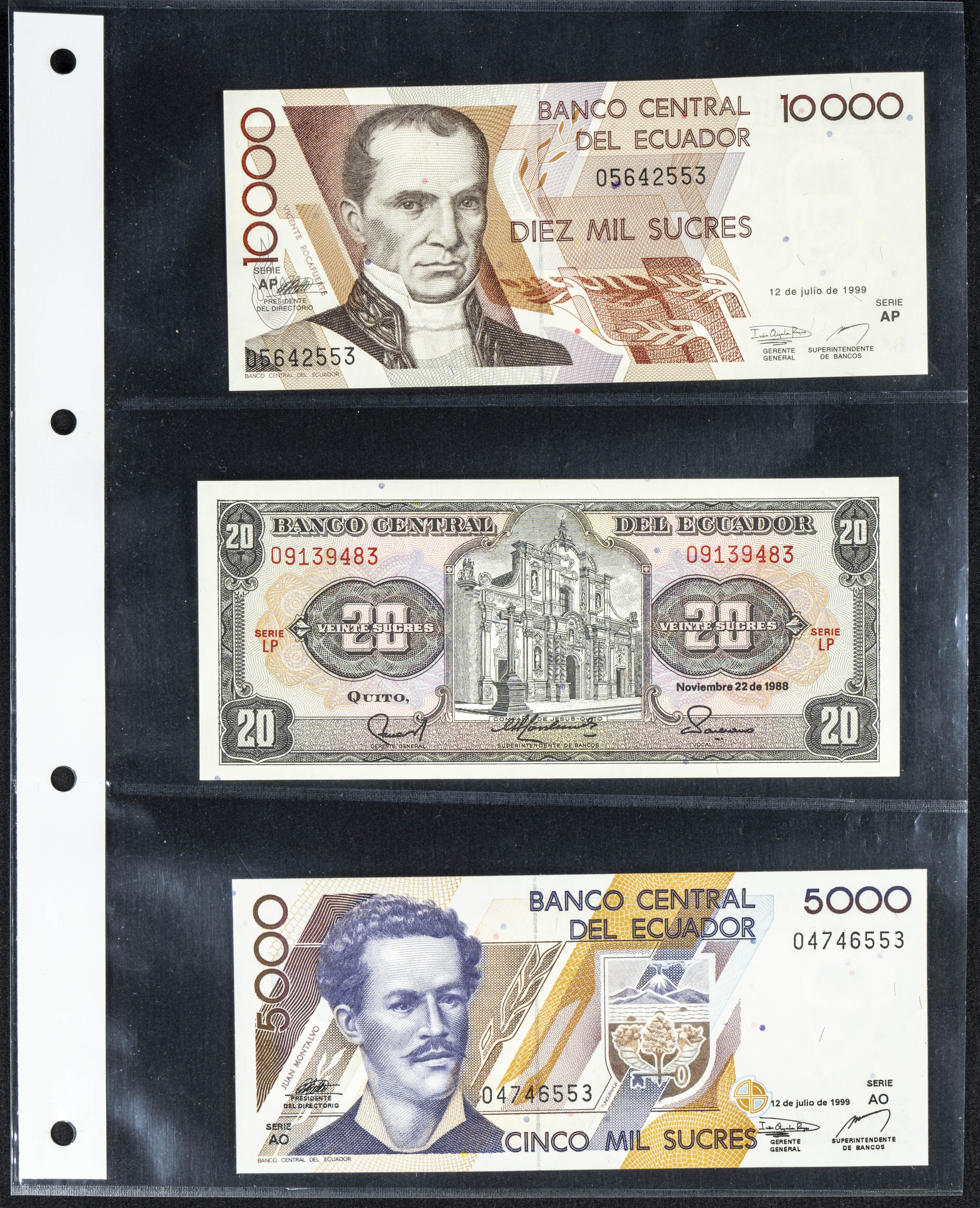 Set of 6 banknotes from Ecuador of various issues, most of them nice qualities. TO EXAM.