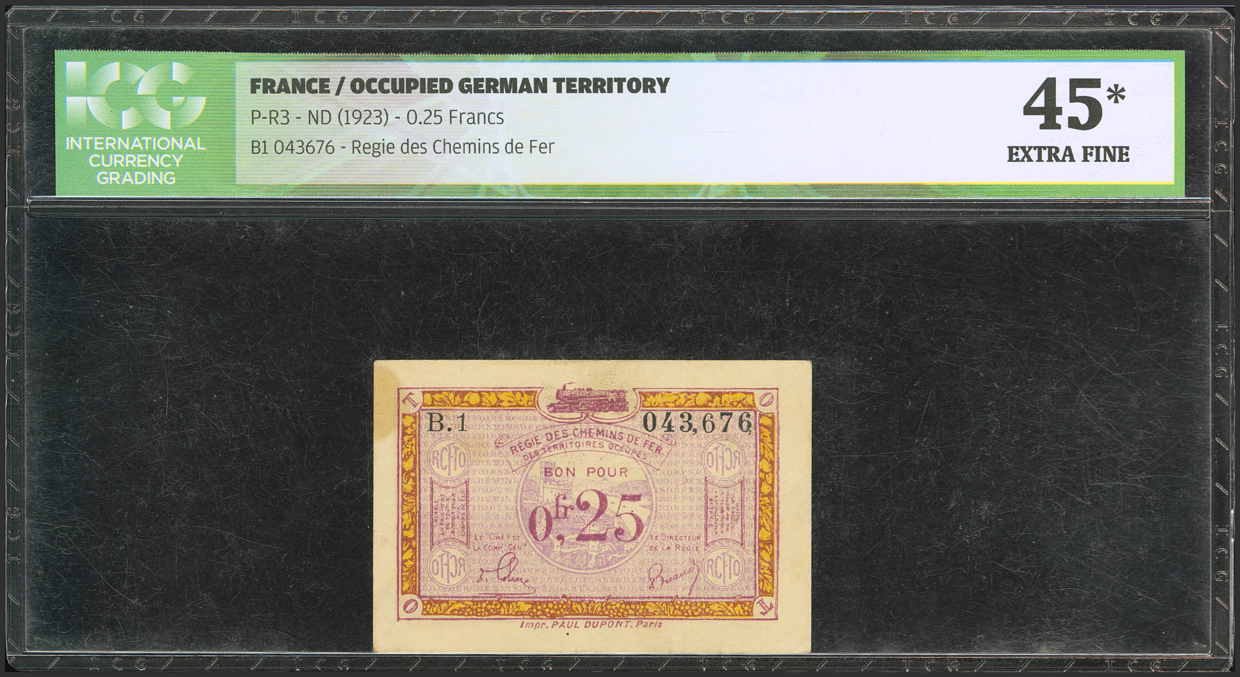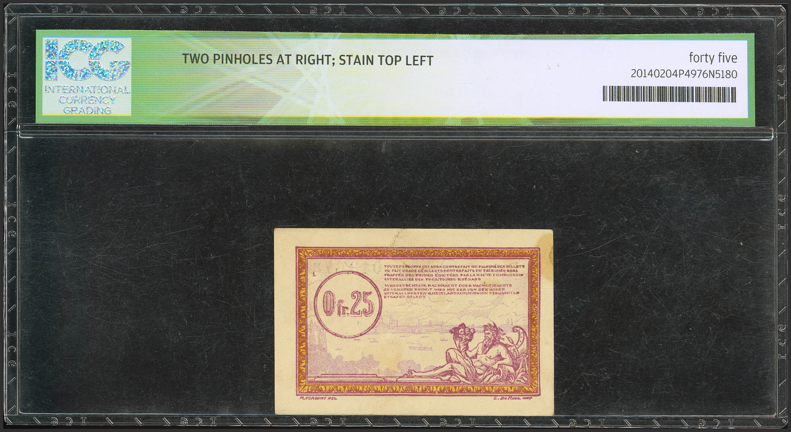 FRANCE. 0'25 Francs. Occupied german territory WWI. (1923ca). (Pick: R3). ICG 45* (two pinholes at right, stain top left).