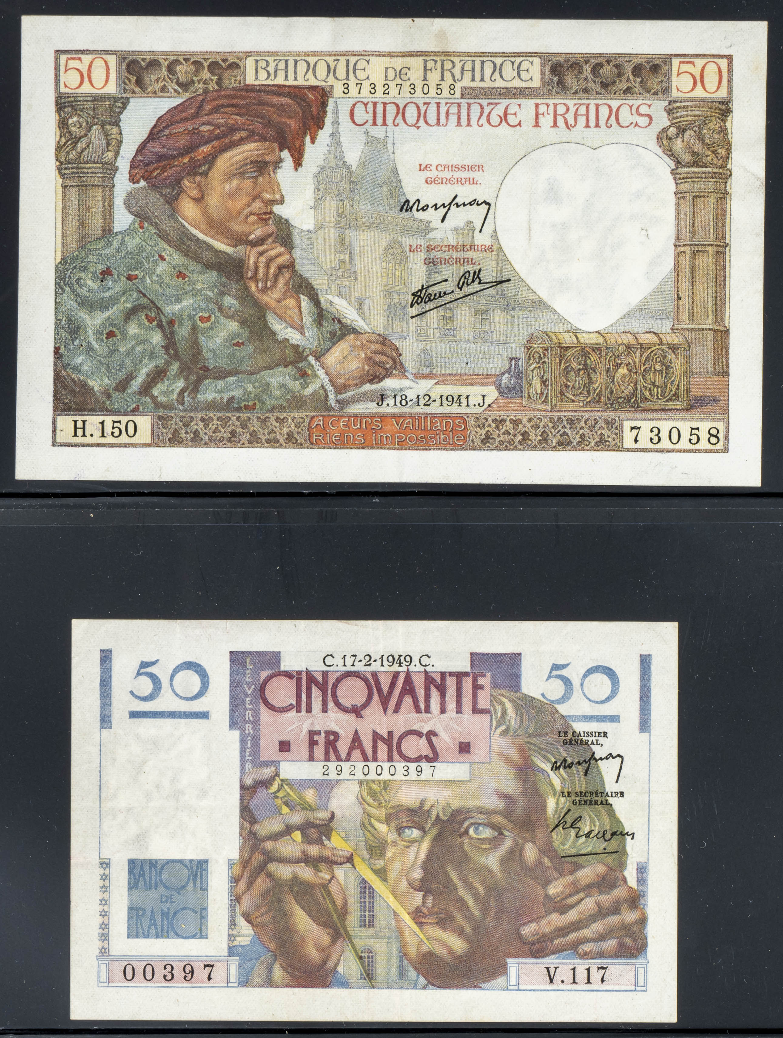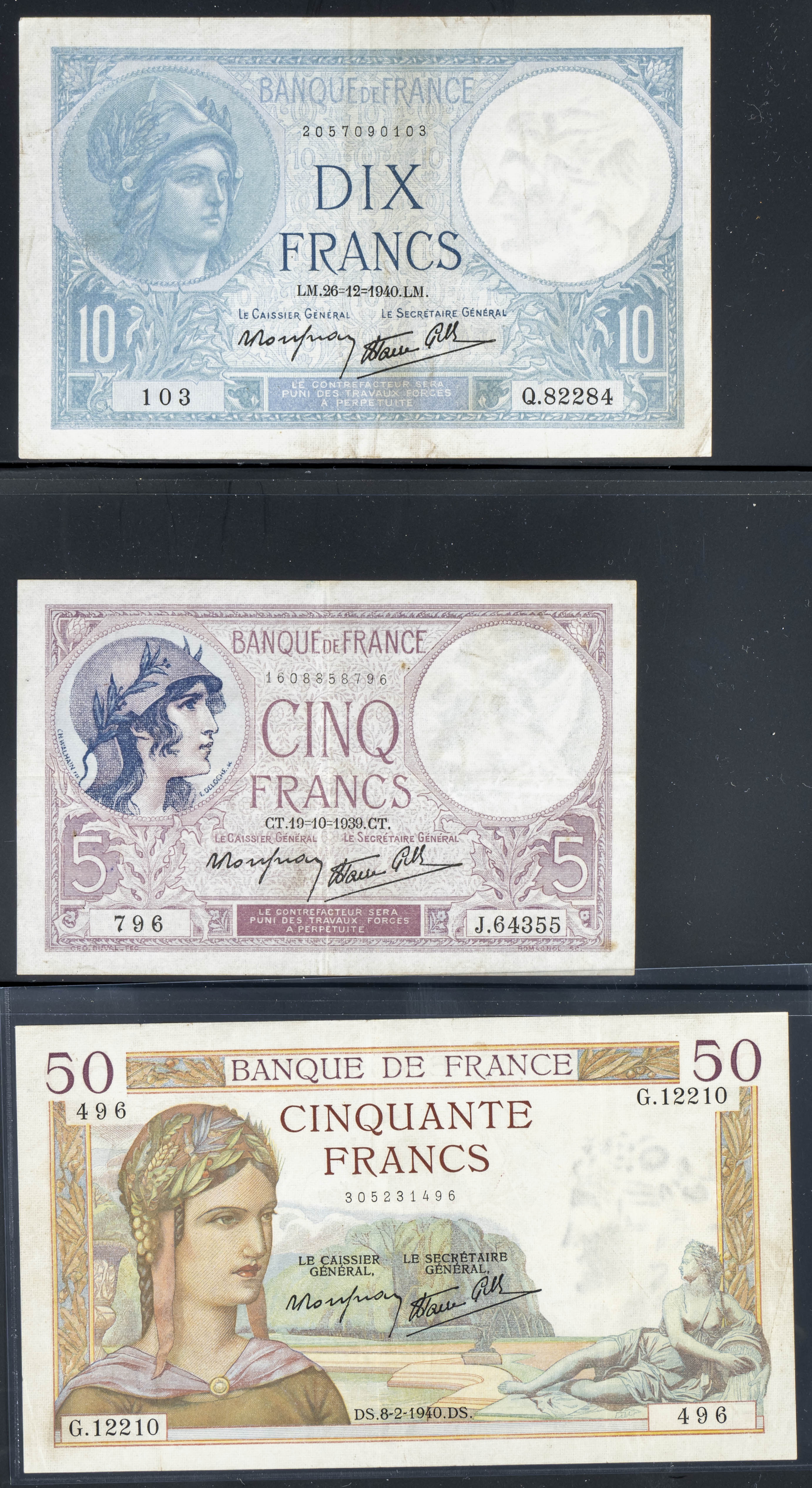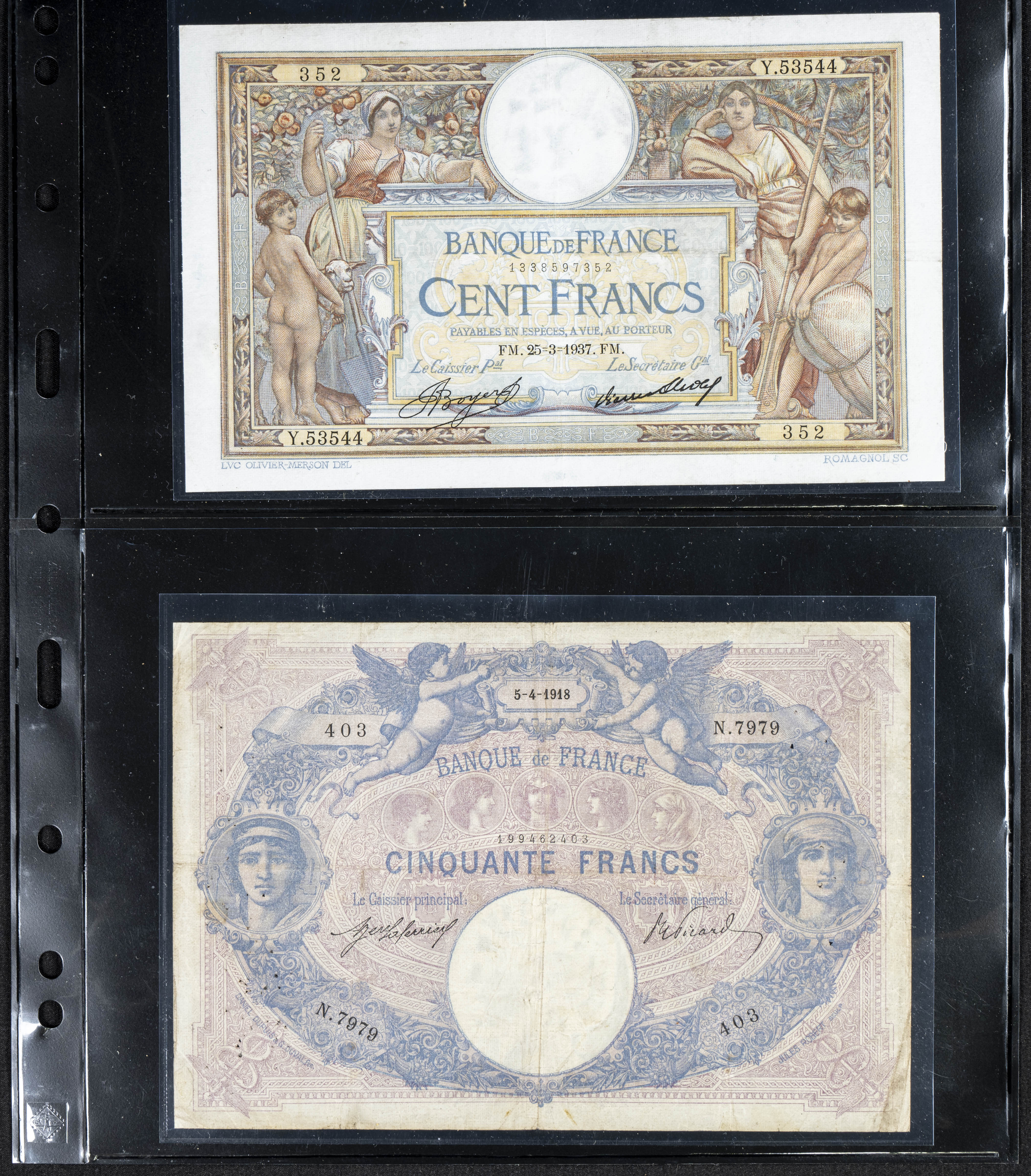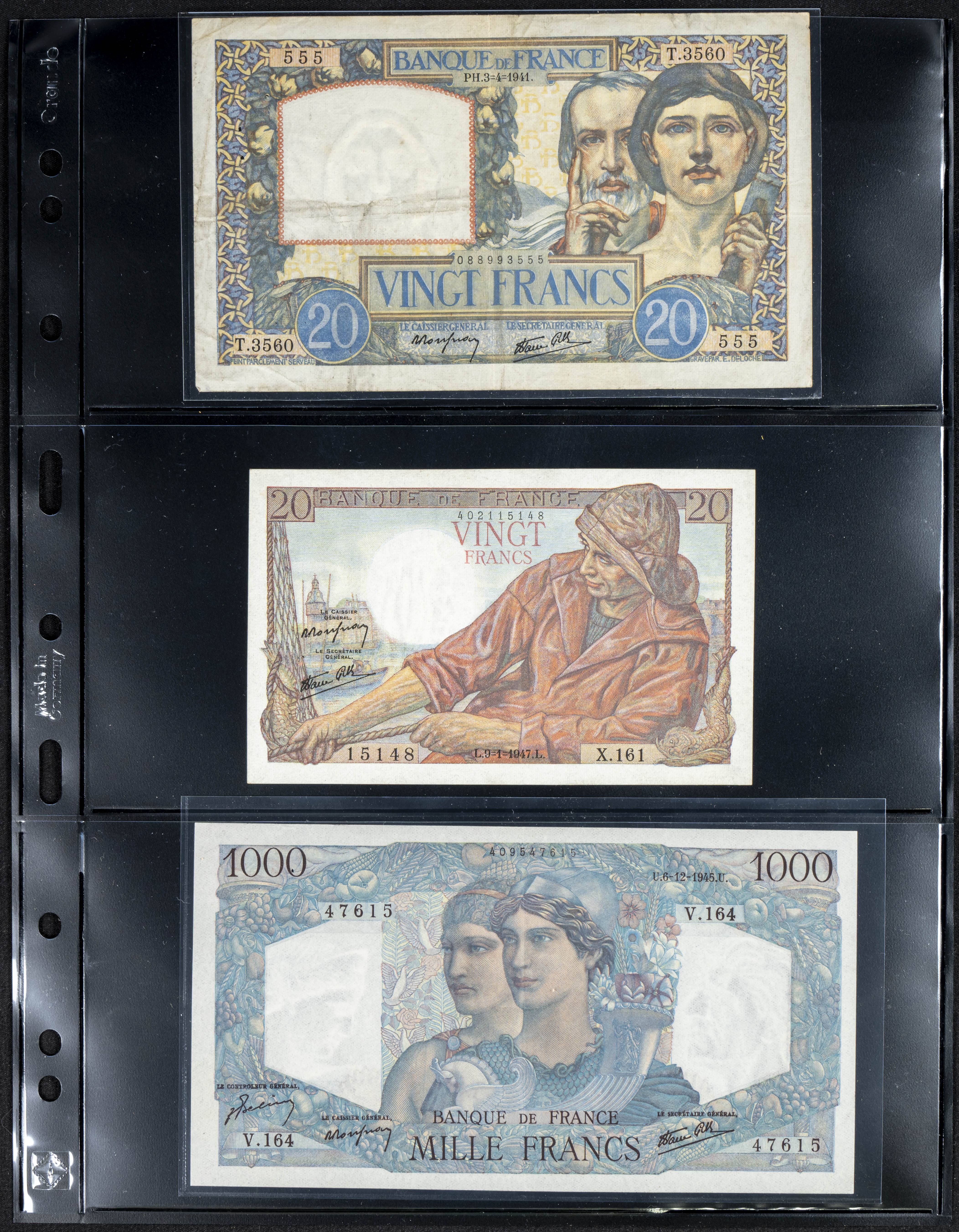 Set of 20 banknotes from France of various issues, different qualities (some of them rare). TO EXAM.