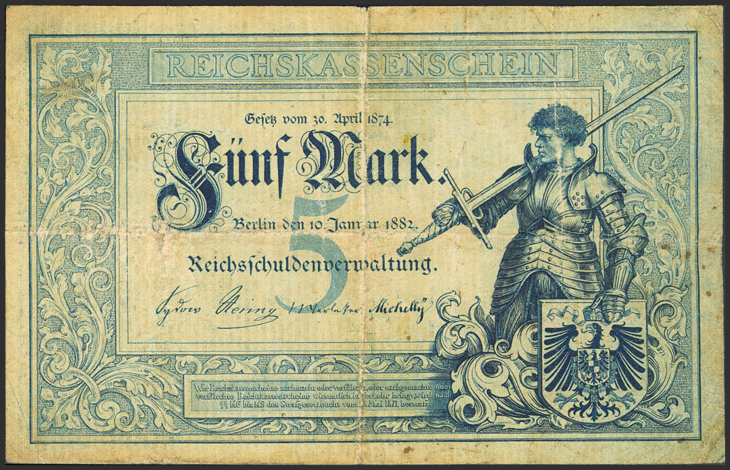English GERMANY. 5 Mark. 1882. (Pick: 5). Very rare. Fine.
